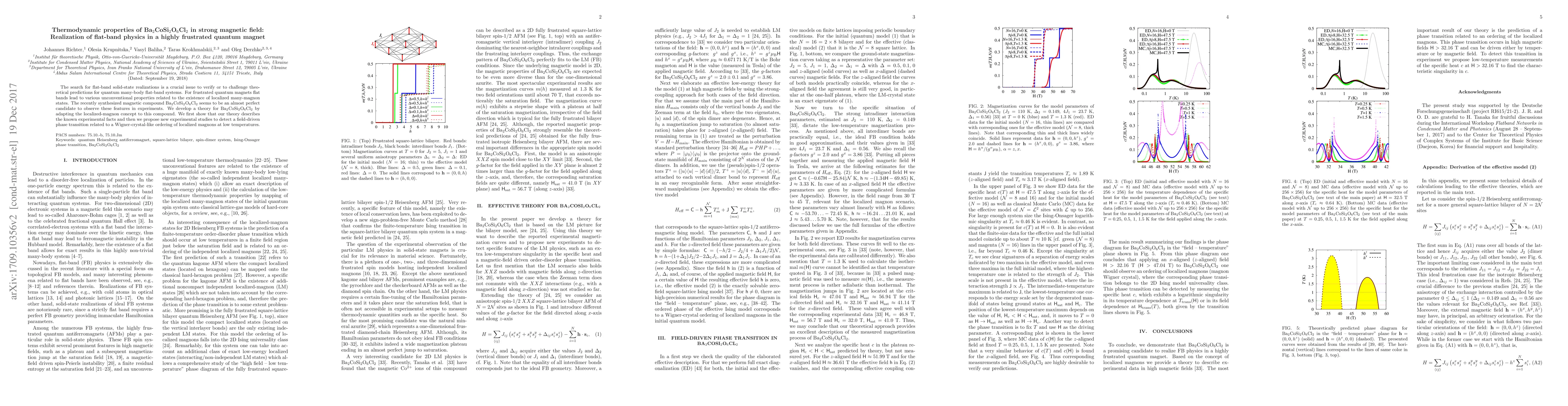 The search for flat-band solid-state realizations is a crucial issue to verify or to challenge theoretical predictions for quantum many-body flat-band systems. For frustrated quantum magnets flat bands lead to various unconventional properties related to the existence of localized many-magnon states. The recently synthesized magnetic compound Ba$_2$CoSi$_2$O$_6$Cl$_2$ seems to be an almost perfect candidate to observe these features in experiments. We develop a theory for Ba$_2$CoSi$_2$O$_6$Cl$_2$ by adapting the localized-magnon concept to this compound. We first show that our theory describes the known experimental facts and then we propose new experimental studies to detect a field-driven phase transition related to a Wigner-crystal-like ordering of localized magnons at low temperatures.