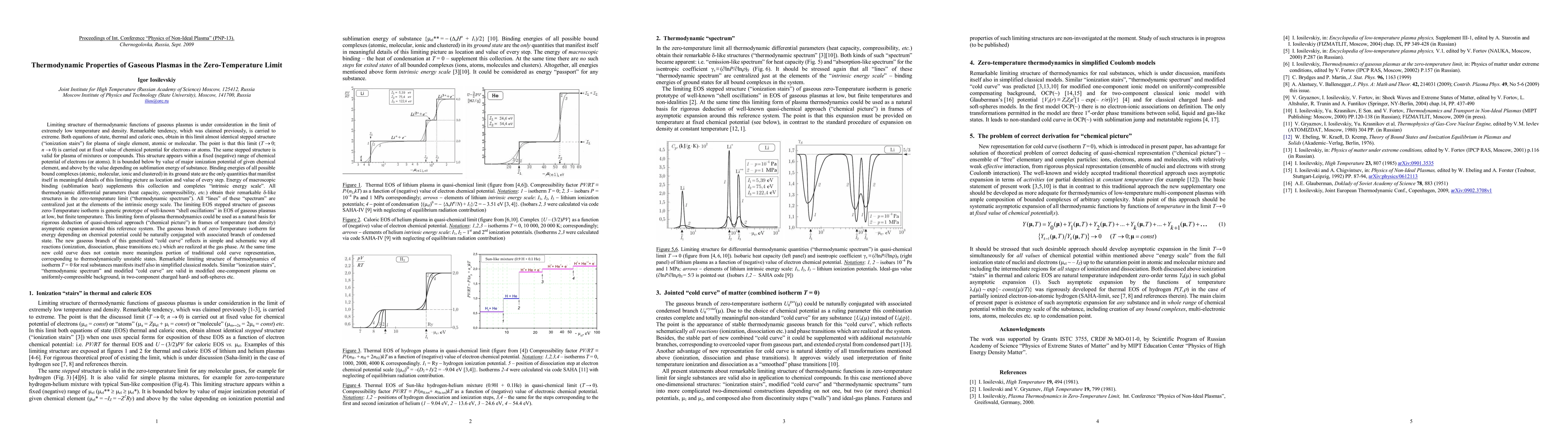 Limiting structure of thermodynamic functions of gaseous plasmas is under consideration in the limit of zero temperature and density. Remarkable tendency, which was claimed previously (Iosilevskiy and Gryaznov, 1985) is carried to extreme. Both equations of state, thermal and caloric ones obtain in this limit identical stepped structure ("ionization stairs") for plasma of any single element when this limit (T -> 0, n -> 0) is carried out at fixed value of chemical potential for electrons (or atoms). The same stepped structure is valid for plasma of mixtures or compounds. This structure appears within a fixed (negative) range of chemical potential of electrons bounded below by value of major ionization potential of element and above by the value depending on sublimation energy of substance. Binding energies of all possible bound complexes (atomic, molecular, ionic and clusters) in its ground state are the only quantities that manifest itself in meaningful details of this limiting picture as location and value of every step. The sublimation energy this collection ("intrinsic energy scale"). All thermodynamic differential parameters (heat capacity, compressibility, etc.) obtain their remarkable betta-like structures in the zero-temperature limit ("thermodynamic spectrum"). All "lines" of these "spectrum" are centralized just at the elements of the intrinsic energy scale. The limiting EOS stepped structure of gaseous zero-Kelvin isotherm is generic prototype of well-known "shell oscillations" in EOS of gaseous plasmas at low, but finite temperature. This limiting form of plasma thermodynamics could be used as a natural basis for rigorous deduction of quasi-chemical approach ("chemical picture") in frames of temperature (not density!) asymptotic expansion around this reference system.