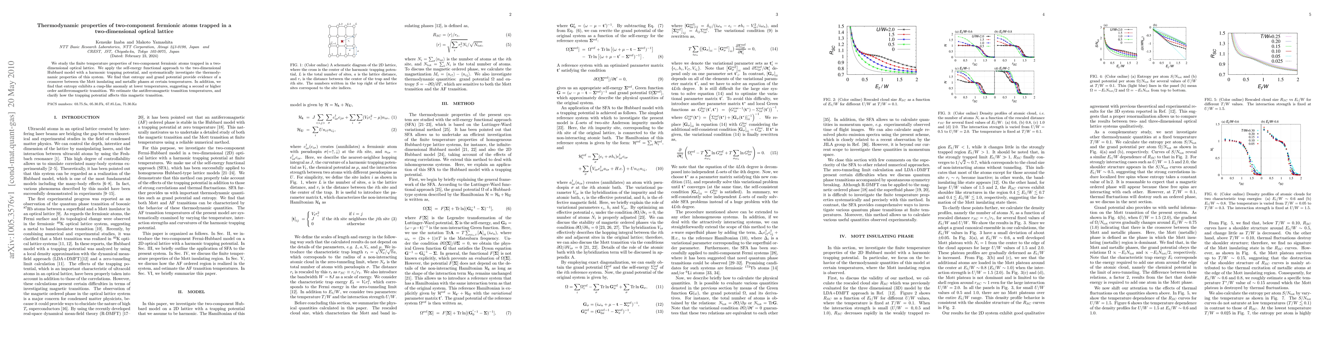 This paper explores the thermodynamic properties of two-component fermionic atoms in a two-dimensional optical lattice, revealing a crossover between Mott insulating and metallic phases at specific temperatures. The study also identifies a cusp-like entropy anomaly at lower temperatures, indicating a second-order antiferromagnetic transition, with the trapping potential influencing this magnetic phase change.