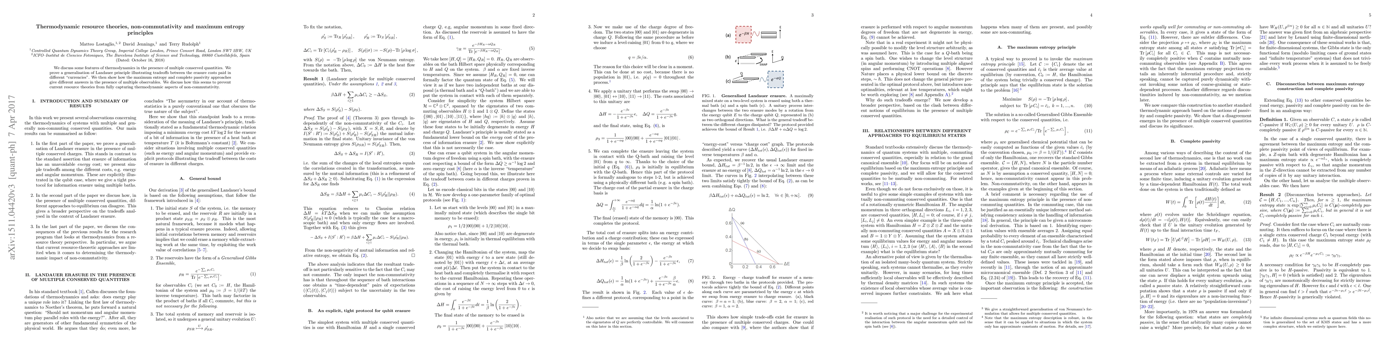We discuss some features of thermodynamics in the presence of multiple conserved quantities. We prove a generalisation of Landauer principle illustrating tradeoffs between the erasure costs paid in different "currencies". We then show how the maximum entropy and complete passivity approaches give different answers in the presence of multiple observables. We discuss how this seems to prevent current resource theories from fully capturing thermodynamic aspects of non-commutativity.