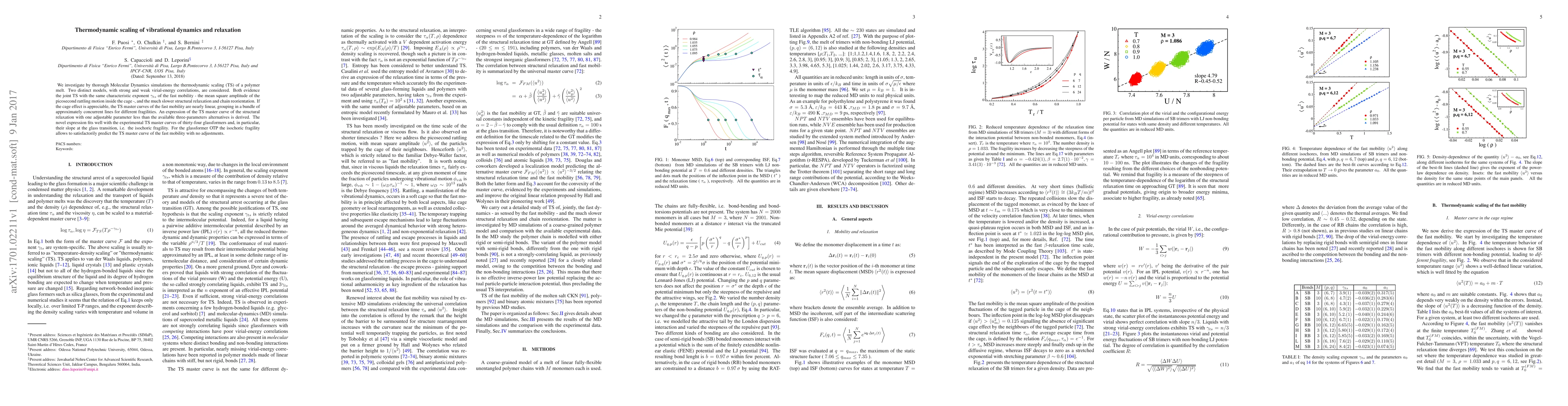 The research uses Molecular Dynamics simulations to study the thermodynamic scaling of a polymer melt, finding consistent scaling exponents for fast mobility and slow structural relaxation across strong and weak virial-energy correlation models. It proposes a new expression for the structural relaxation's TS master curve, which fits experimental data for 34 glassformers, including OTP, predicting its fast mobility TS master curve without adjustments.