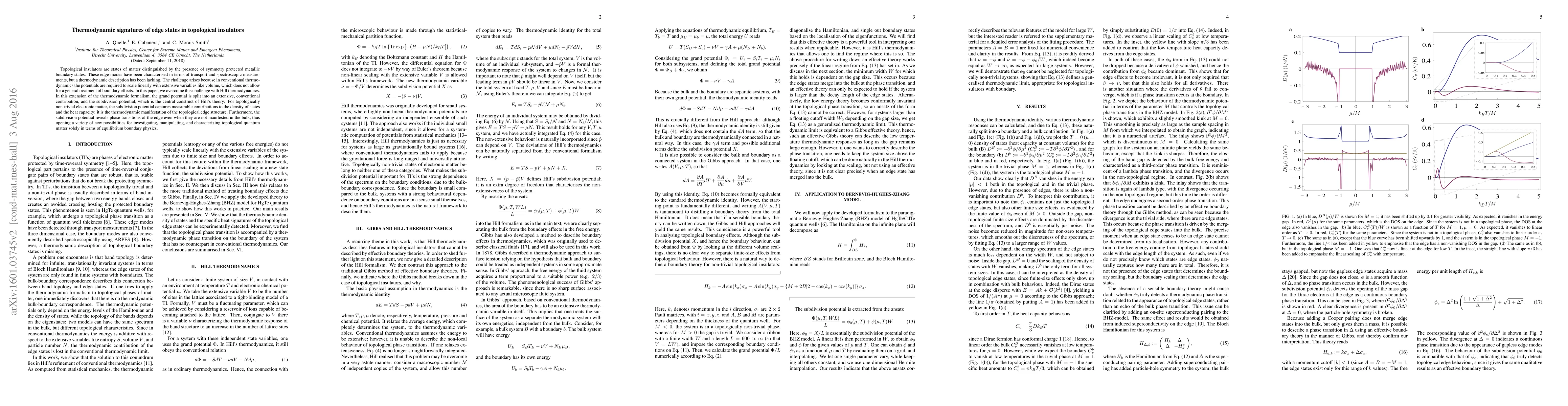 This research introduces Hill thermodynamics to describe topological insulator edge states, which were previously unexplored through a thermodynamic lens. The subdivision potential, a key concept, captures edge-state contributions to density of states and heat capacity, revealing edge phase transitions not apparent in the bulk, opening new avenues for studying topological quantum matter via equilibrium boundary physics.