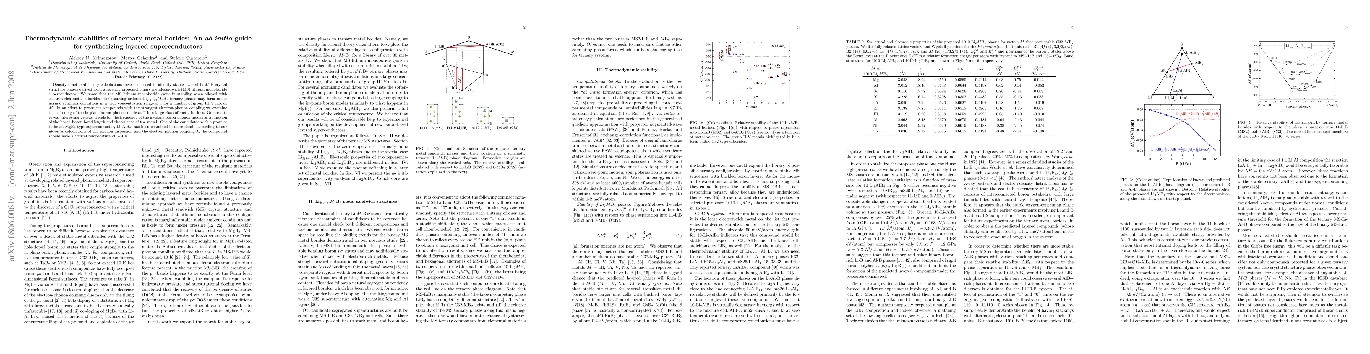 Density functional theory calculations have been used to identify stable layered Li-$M$-B crystal structure phases derived from a recently proposed binary metal-sandwich (MS) lithium monoboride superconductor. We show that the MS lithium monoboride gains in stability when alloyed with electron-rich metal diborides; the resulting ordered Li$_{2(1-x)}M_x$B$_2$ ternary phases may form under normal synthesis conditions in a wide concentration range of $x$ for a number of group-III-V metals $M$. In an effort to pre-select compounds with the strongest electron-phonon coupling we examine the softening of the in-plane boron phonon mode at $\Gamma$ in a large class of metal borides. Our results reveal interesting general trends for the frequency of the in-plane boron phonon modes as a function of the boron-boron bond length and the valence of the metal. One of the candidates with a promise to be an MgB$_2$-type superconductor, Li$_2$AlB$_4$, has been examined in more detail: according to our {\it ab initio} calculations of the phonon dispersion and the electron-phonon coupling $\lambda$, the compound should have a critical temperature of $\sim4$ K.