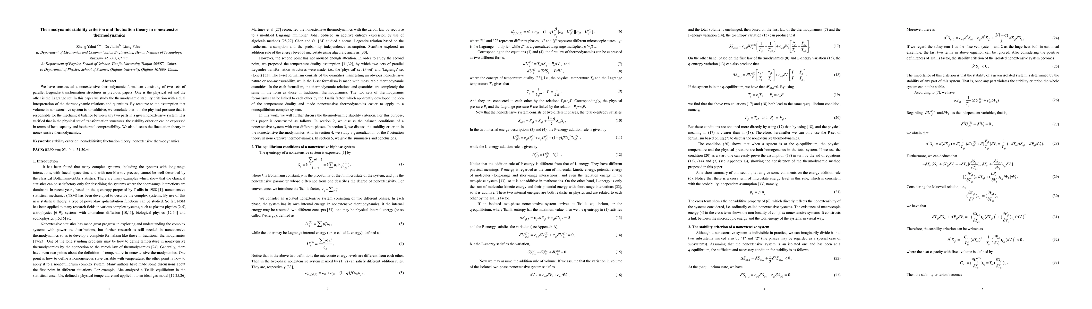 This paper explores thermodynamic stability criteria in nonextensive thermodynamics, utilizing dual sets of Legendre transformations. It identifies physical pressure as the key factor for mechanical balance in nonextensive systems and expresses the stability criterion in terms of heat capacity and isothermal compressibility. Additionally, it discusses the implications of fluctuation theory within this nonextensive framework.