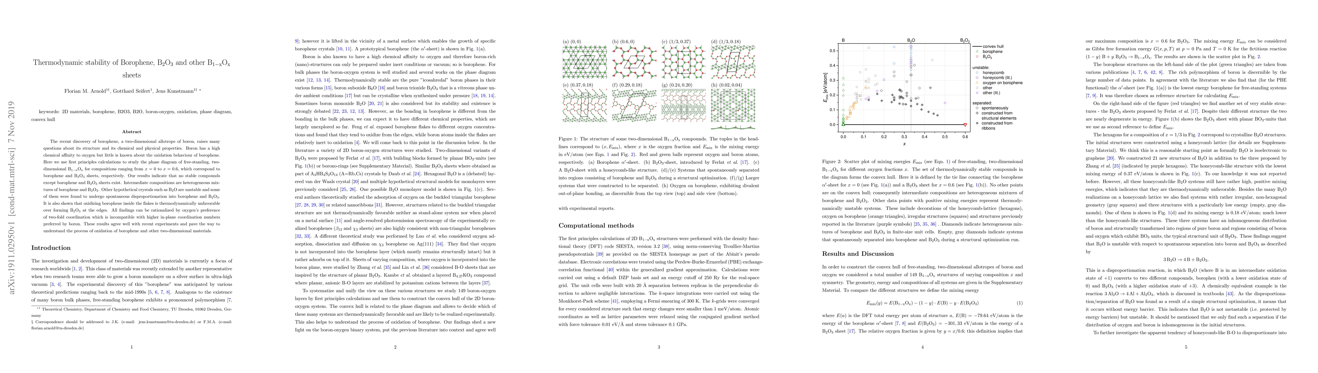 This study uses first principles calculations to determine that borophene and $\mathrm{B_2O_3}$ sheets are the only thermodynamically stable compositions of $\mathrm{B_{1-x}O_x}$ sheets, with intermediate compositions forming heterogeneous mixtures. Unstable compositions undergo disproportionation into borophene and $\mathrm{B_2O_3}$, highlighting oxygen's preference for two-fold coordination.