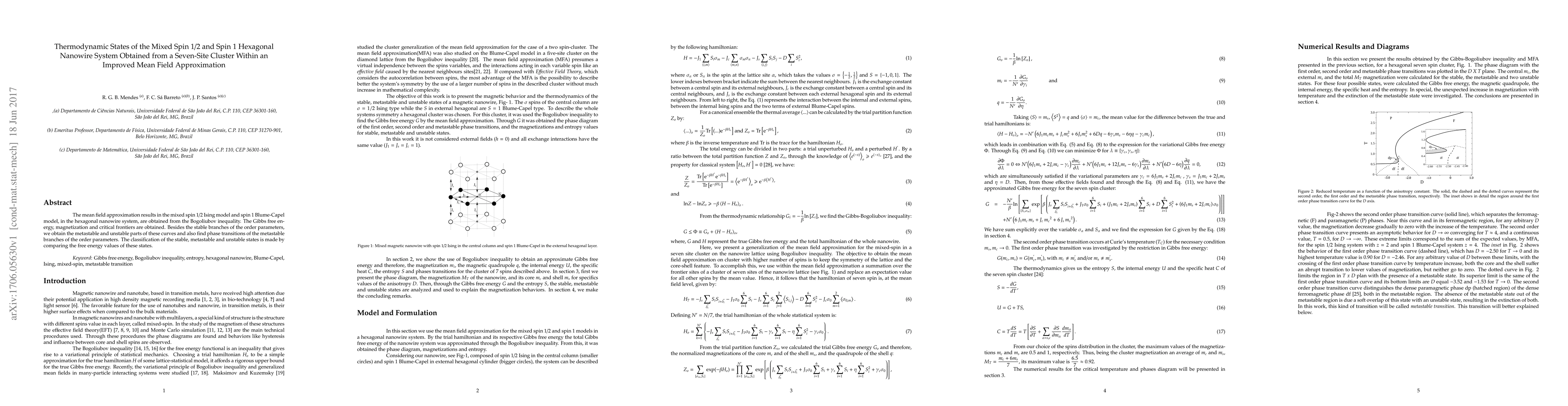 Researchers used a mean field approximation to study a hexagonal nanowire system with mixed spin 1/2 and spin 1 particles, finding stable, metastable, and unstable states with phase transitions.