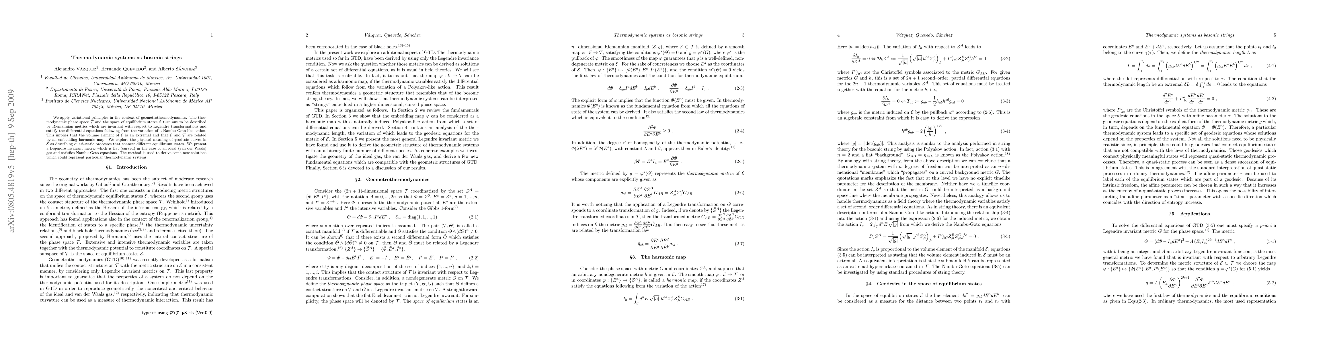 We apply variational principles in the context of geometrothermodynamics. The thermodynamic phase space ${\cal T}$ and the space of equilibrium states ${\cal E}$ turn out to be described by Riemannian metrics which are invariant with respect to Legendre transformations and satisfy the differential equations following from the variation of a Nambu-Goto-like action. This implies that the volume element of ${\cal E}$ is an extremal and that ${\cal E}$ and ${\cal T}$ are related by an embedding harmonic map. We explore the physical meaning of geodesic curves in ${\cal E}$ as describing quasi-static processes that connect different equilibrium states. We present a Legendre invariant metric which is flat (curved) in the case of an ideal (van der Waals) gas and satisfies Nambu-Goto equations. The method is used to derive some new solutions which could represent particular thermodynamic systems.