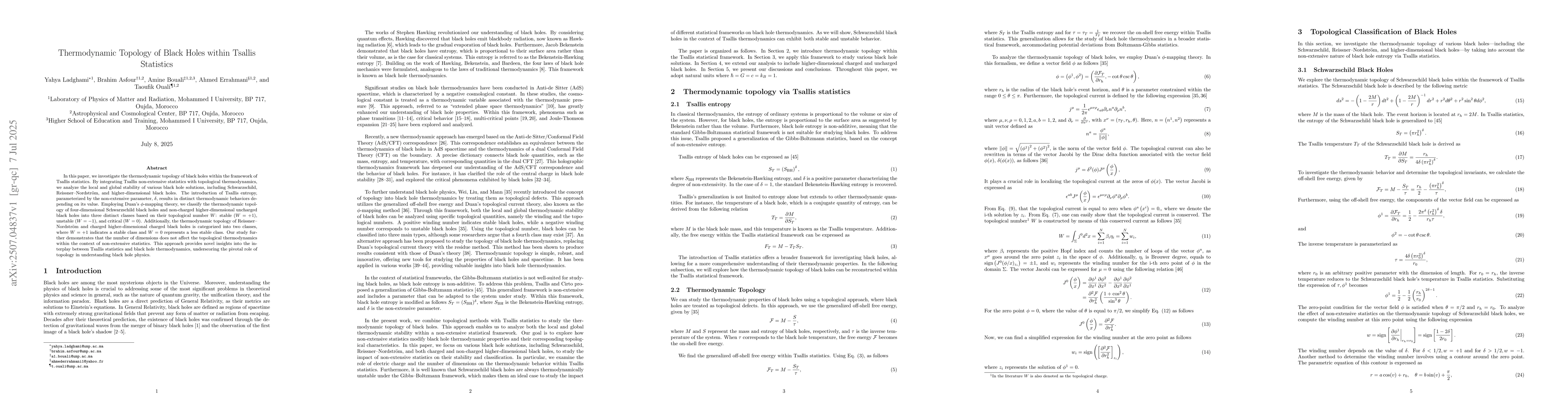 In this paper, we investigate the thermodynamic topology of black holes within the framework of Tsallis statistics. By integrating Tsallis non-extensive statistics with topological thermodynamics, we analyze the local and global stability of various black hole solutions, including Schwarzschild, Reissner-Nordstrom, and higher-dimensional black holes. The introduction of Tsallis entropy, parameterized by the non-extensive parameter delta, results in distinct thermodynamic behaviors depending on its value. Employing Duan's phi-mapping theory, we classify the thermodynamic topology of four-dimensional Schwarzschild black holes and non-charged higher-dimensional black holes into three distinct classes based on their topological number W: stable (W = +1), unstable (W = -1), and critical (W = 0). Additionally, the thermodynamic topology of Reissner-Nordstrom and charged higher-dimensional black holes is categorized into two classes, where W = +1 indicates a stable class and W = 0 represents a less stable class. Our study further demonstrates that the number of dimensions does not affect the topological thermodynamics within the context of non-extensive statistics. This approach provides novel insights into the interplay between Tsallis statistics and black hole thermodynamics, underscoring the pivotal role of topology in understanding black hole physics.