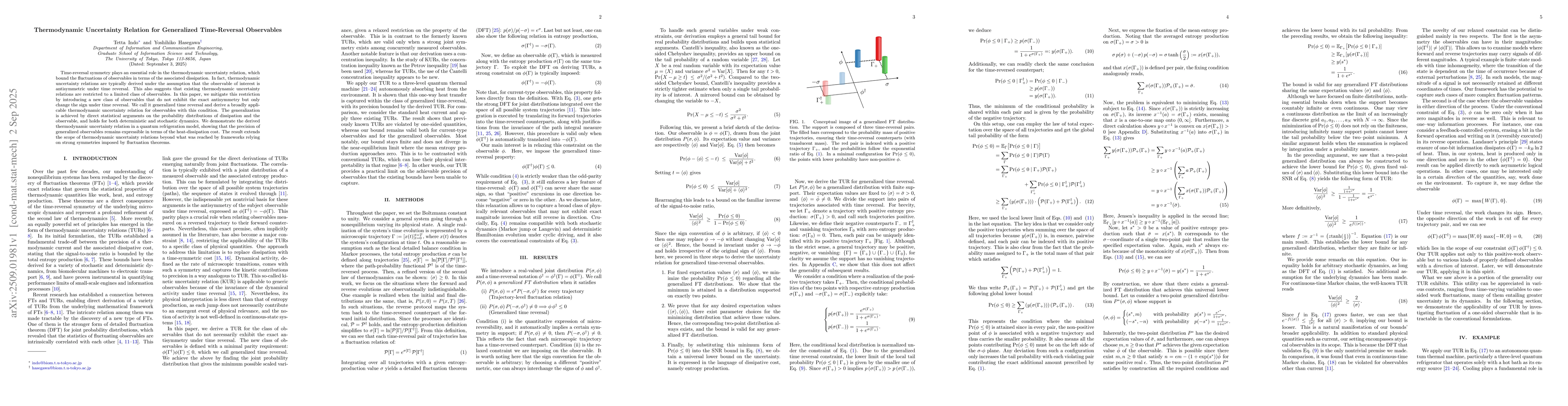 Time-reversal symmetry plays an essential role in the thermodynamic uncertainty relation, which bound the fluctuations of observables in terms of the associated dissipation. In fact, thermodynamic uncertainty relations are typically derived under the assumption that the observable of interest is antisymmetric under time reversal. This also suggests that existing thermodynamic uncertainty relations are restricted to a limited class of observables. In this paper, we mitigate this restriction by introducing a new class of observables that do not exhibit the exact antisymmetry but only change the sign under time reversal. We call it generalized time reversal and derive a broadly applicable thermodynamic uncertainty relation for observables with this condition. The generalization is achieved by direct statistical arguments on the probability distributions of dissipation and the observable, and holds for both deterministic and stochastic dynamics. We demonstrate the derived thermodynamic uncertainty relation in a quantum refrigeration model, showing that the precision of generalized observables remains expressible in terms of the heat-dissipation cost. The result extends the scope of thermodynamic uncertainty relations beyond what was reached by frameworks relying on strong symmetries imposed by fluctuation theorems.