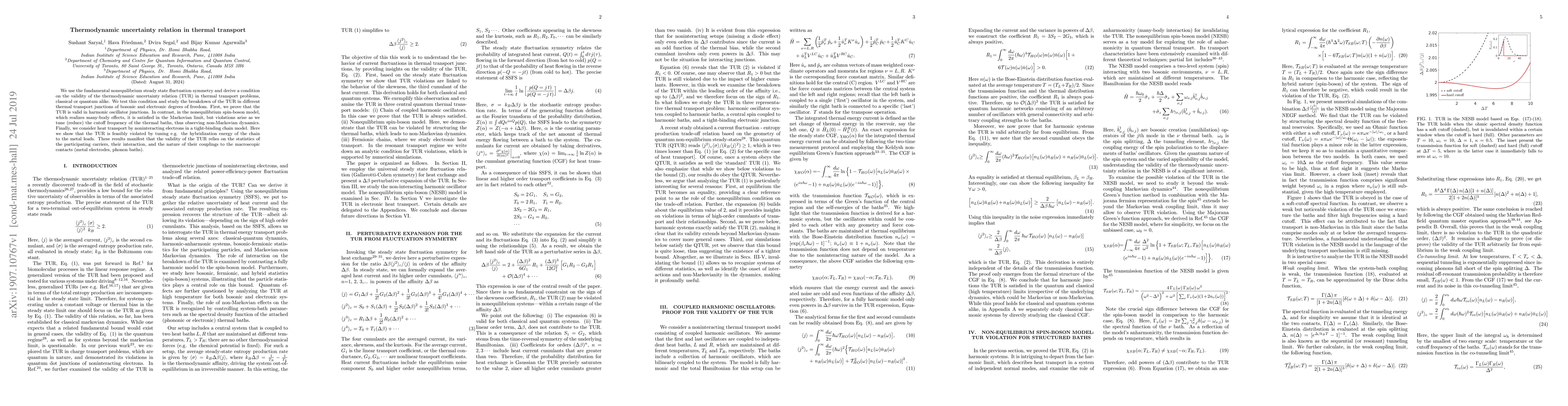 Research explores the limitations of the thermodynamic uncertainty relation in thermal transport, finding it valid in harmonic oscillator junctions but violated in more complex systems involving interactions between particles and their couplings to external baths.