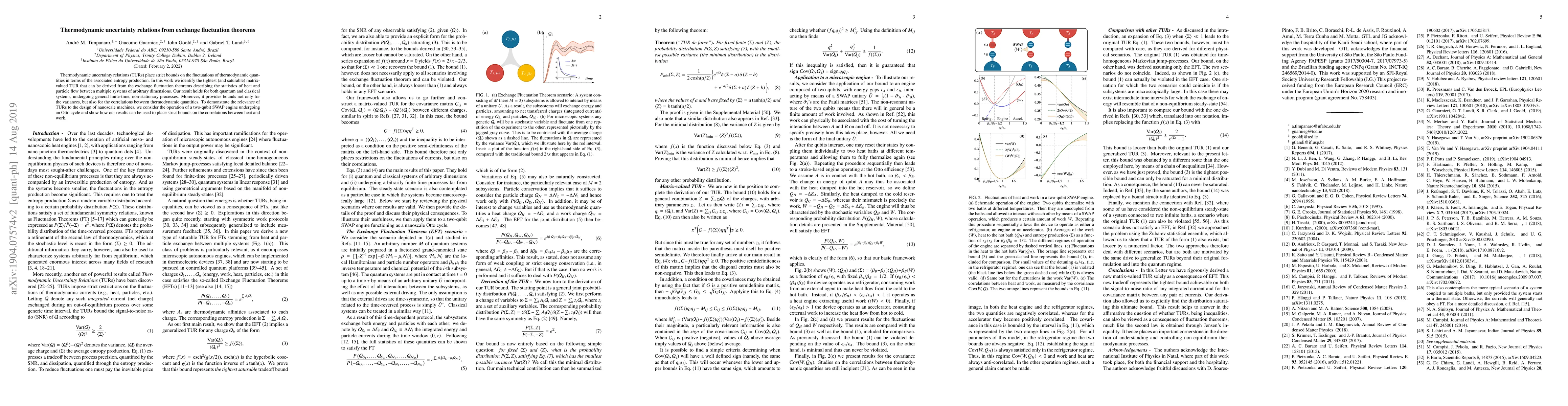 This paper establishes a matrix-valued thermodynamic uncertainty relation (TUR) derived from exchange fluctuation theorems, applicable to both quantum and classical non-Markovian systems. It provides bounds on variances and correlations between thermodynamic quantities, demonstrated through a two-qubit SWAP engine in an Otto cycle.