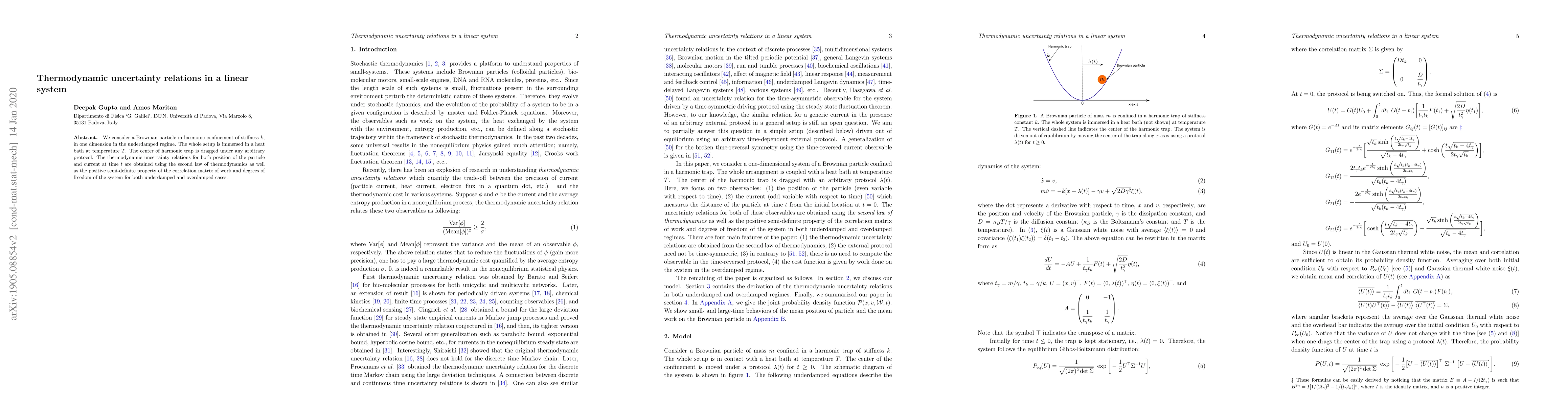 This paper derives thermodynamic uncertainty relations for a Brownian particle in a harmonic trap under arbitrary protocols, using the second law of thermodynamics and properties of the correlation matrix. It compares results for both underdamped and overdamped regimes.