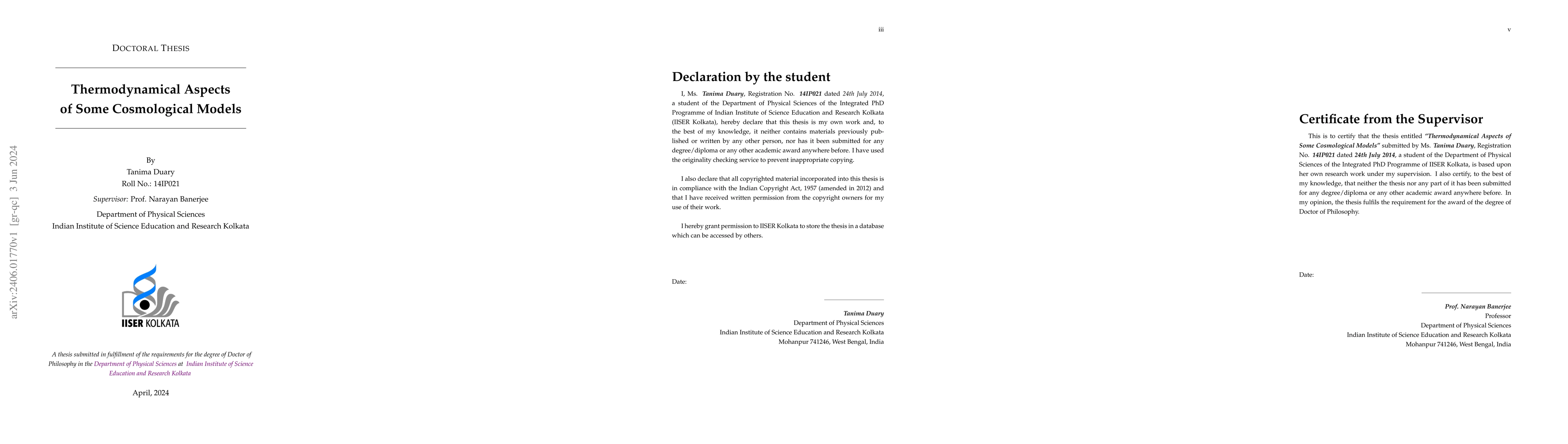 This paper conducts a thermodynamic analysis of various cosmological models, focusing on those explaining late-time cosmic acceleration, including quintessence, Brans-Dicke, and dark energy models, while assessing their thermodynamic stability and compatibility with the Generalized Second Law of Thermodynamics. The study concludes with a discussion on future research directions.