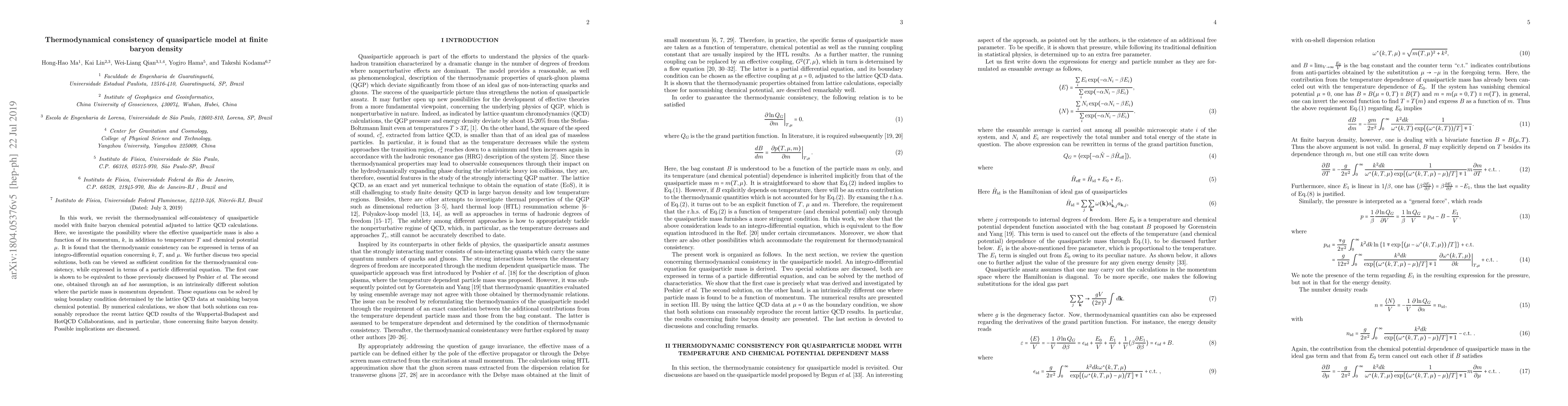 Researchers investigate thermodynamical consistency of quasiparticle model with a finite baryon chemical potential, finding two solutions that can reproduce lattice QCD results for finite baryon density.