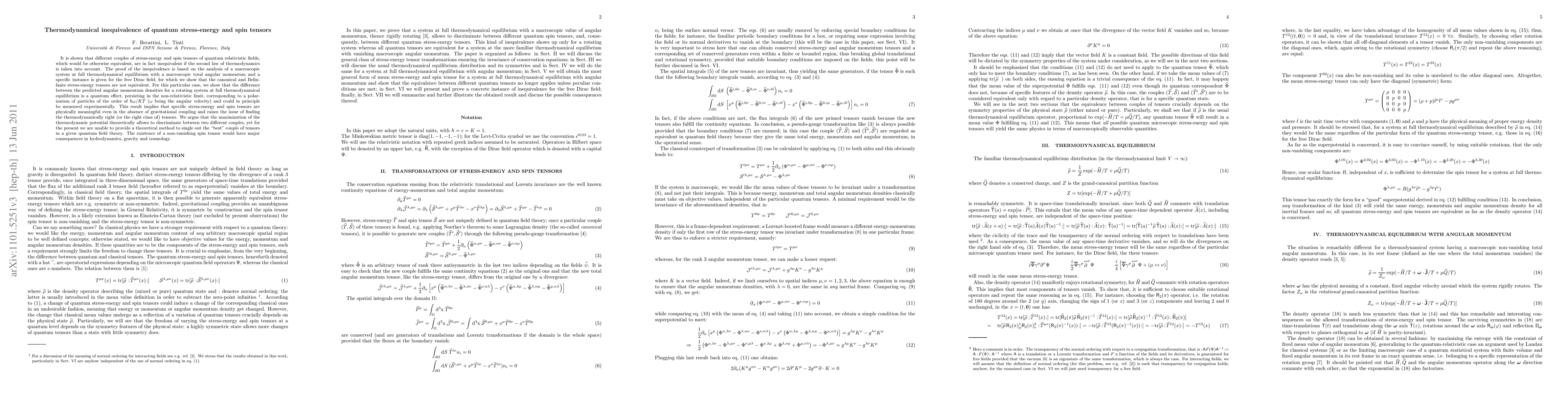 This paper demonstrates that quantum stress-energy and spin tensors, previously considered equivalent, are thermodynamically inequivalent. Specifically, the canonical and Belinfante tensors for the Dirac field differ in their predicted angular momentum densities, revealing a quantum effect that could be experimentally measurable.