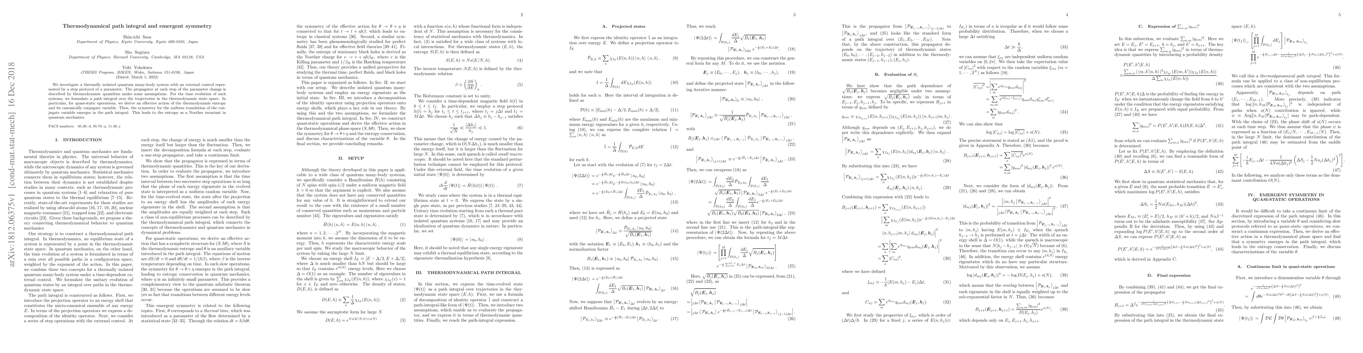 This paper explores the thermodynamic path integral for thermally isolated quantum systems undergoing quasi-static parameter changes, deriving an effective action based on thermodynamic entropy. It reveals an emergent symmetry in the path integral, establishing entropy as a Noether invariant in quantum mechanics.