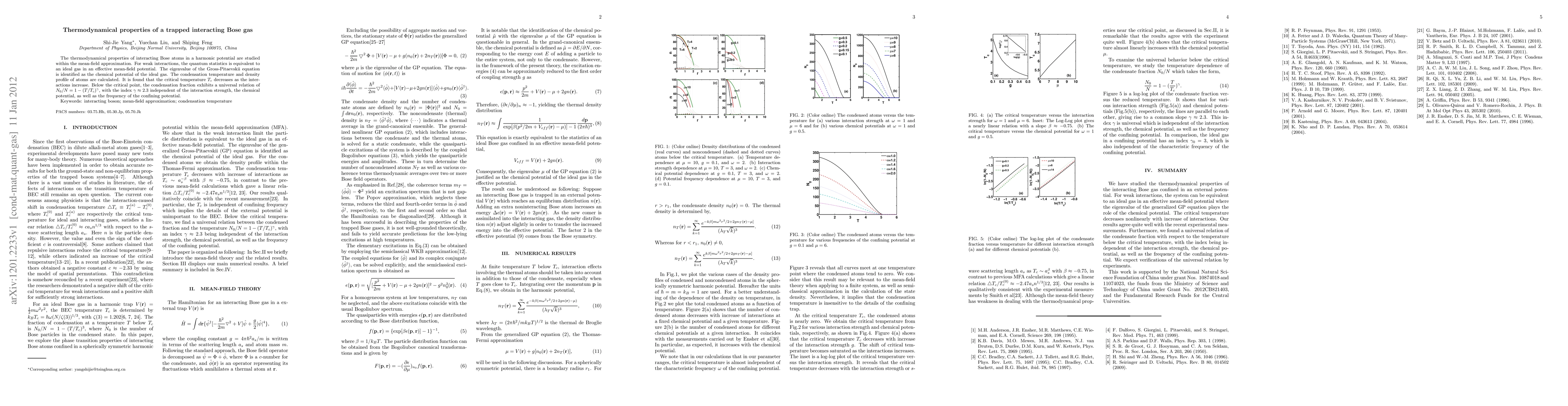 We used a mean-field approach to study the thermodynamic properties of an interacting Bose gas in an external potential.