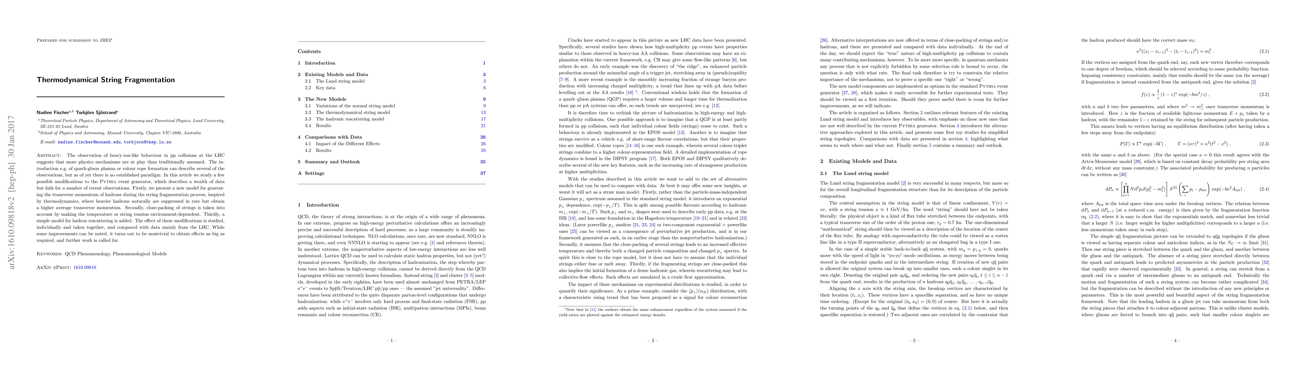 The observation of heavy-ion-like behaviour in pp collisions at the LHC suggests that more physics mechanisms are at play than traditionally assumed. The introduction e.g. of quark-gluon plasma or colour rope formation can describe several of the observations, but as of yet there is no established paradigm. In this article we study a few possible modifications to the Pythia event generator, which describes a wealth of data but fails for a number of recent observations. Firstly, we present a new model for generating the transverse momentum of hadrons during the string fragmentation process, inspired by thermodynamics, where heavier hadrons naturally are suppressed in rate but obtain a higher average transverse momentum. Secondly, close-packing of strings is taken into account by making the temperature or string tension environment-dependent. Thirdly, a simple model for hadron rescattering is added. The effect of these modifications is studied, individually and taken together, and compared with data mainly from the LHC. While some improvements can be noted, it turns out to be nontrivial to obtain effects as big as required, and further work is called for.