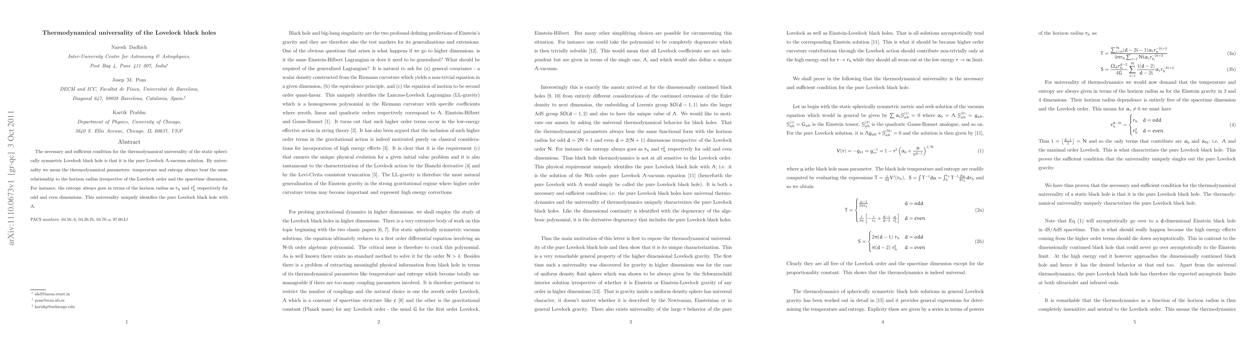 The necessary and sufficient condition for the thermodynamical universality of the static spherically symmetric Lovelock black hole is that it is the pure Lovelock {\Lambda}-vacuum solution. By universality we mean the thermodynamical parameters: temperature and entropy always bear the same relationship to the horizon radius irrespective of the Lovelock order and the spacetime dimension. For instance, the entropy always goes in terms of the horizon radius as rh and r^2 respectively for h odd and even dimensions. This universality uniquely identifies the pure Lovelock black hole with {\Lambda}.