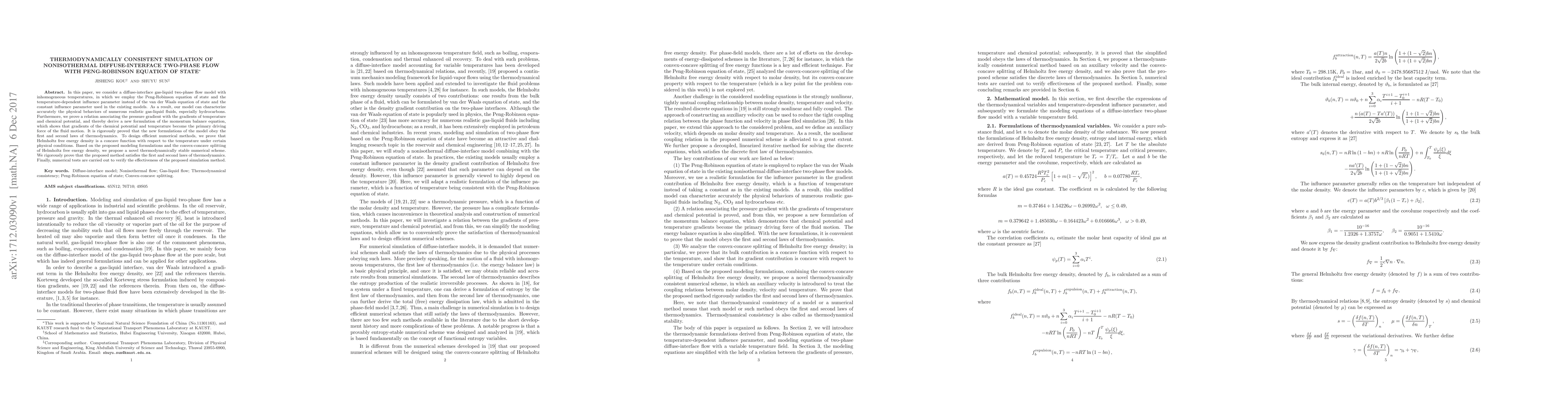 This paper develops a thermodynamically consistent model for nonisothermal diffuse-interface gas-liquid two-phase flow using the Peng-Robinson equation of state, showing that gradients of chemical potential and temperature are primary fluid motion drivers. The new model rigorously obeys the first and second laws of thermodynamics, and a novel thermodynamically stable numerical scheme is proposed and validated through numerical tests.