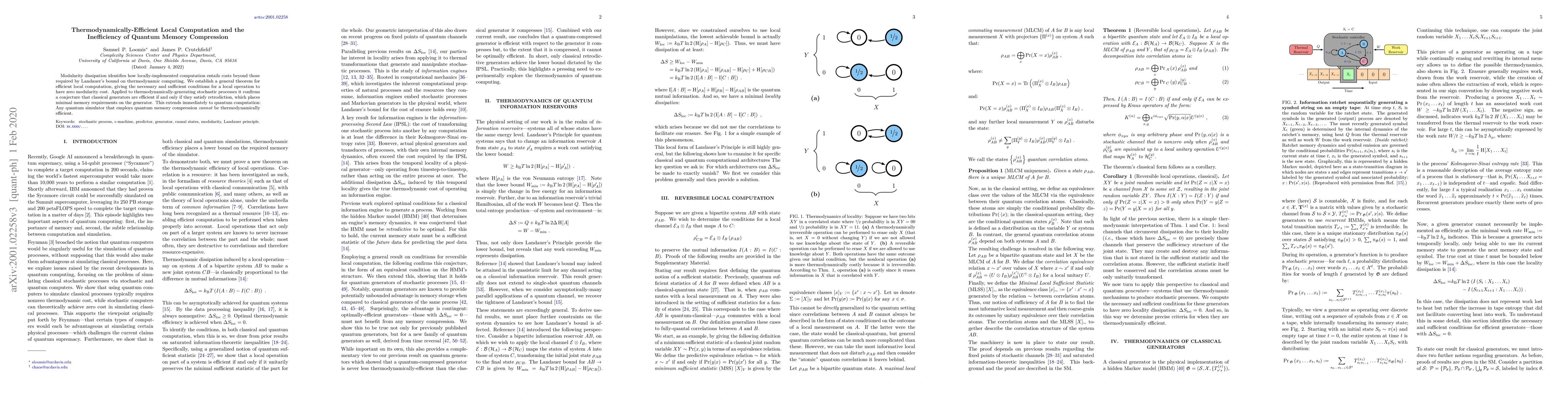 This paper establishes conditions for thermodynamically-efficient local computation, showing that classical generators are efficient if they satisfy retrodiction, which minimizes memory requirements. It concludes that quantum memory compression in quantum simulators cannot be thermodynamically efficient.