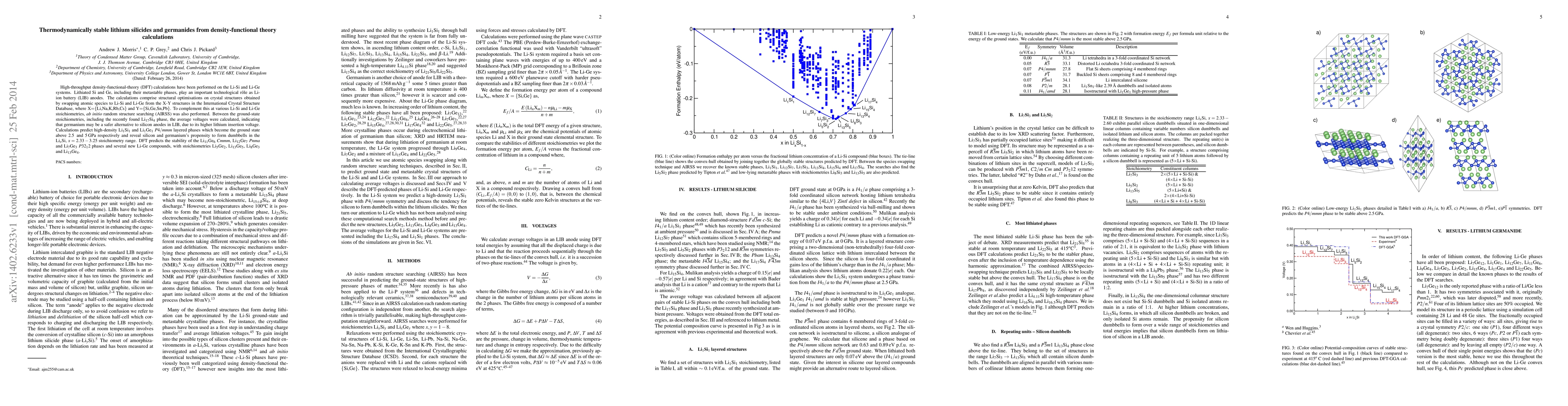 Density-functional-theory (DFT) calculations have been performed on the Li-Si and Li-Ge systems. Lithiated Si and Ge, including their metastable phases, play an important technological r\^ole as Li-ion battery (LIB) anodes. The calculations comprise structural optimisations on crystal structures obtained by swapping atomic species to Li-Si and Li-Ge from the X-Y structures in the International Crystal Structure Database, where X={Li,Na,K,Rb,Cs} and Y={Si,Ge,Sn,Pb}. To complement this at various Li-Si and Li-Ge stoichiometries, ab initio random structure searching (AIRSS) was also performed. Between the ground-state stoichiometries, including the recently found Li$_{17}$Si$_{4}$ phase, the average voltages were calculated, indicating that germanium may be a safer alternative to silicon anodes in LIB, due to its higher lithium insertion voltage. Calculations predict high-density Li$_1$Si$_1$ and Li$_1$Ge$_1$ $P4/mmm$ layered phases which become the ground state above 2.5 and 5 GPa respectively and reveal silicon and germanium's propensity to form dumbbells in the Li$_x$Si, $x=2.33-3.25$ stoichiometry range. DFT predicts the stability of the Li$_{11}$Ge$_6$ $Cmmm$, Li$_{12}$Ge$_7$ $Pnma$ and Li$_7$Ge$_3$ $P32_12$ phases and several new Li-Ge compounds, with stoichiometries Li$_5$Ge$_2$, Li$_{13}$Ge$_5$, Li$_8$Ge$_3$ and Li$_{13}$Ge$_4$.