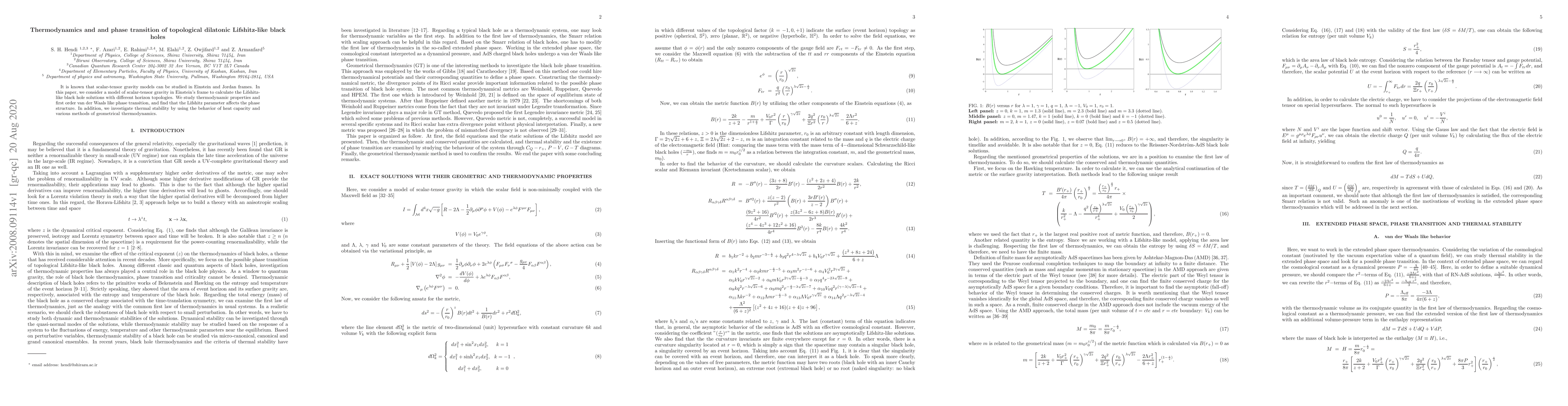 It is known that scalar-tensor gravity models can be studied in Einstein and Jordan frames. In this paper, we consider a model of scalar-tensor gravity in Einstein's frame to calculate the Lifshitz-like black hole solutions with different horizon topologies. We study thermodynamic properties and first order van der Waals like phase transition, and find that the Lifshitz parameter affects the phase structure. In addition, we investigate thermal stability by using the behavior of heat capacity and various methods of geometrical thermodynamics.