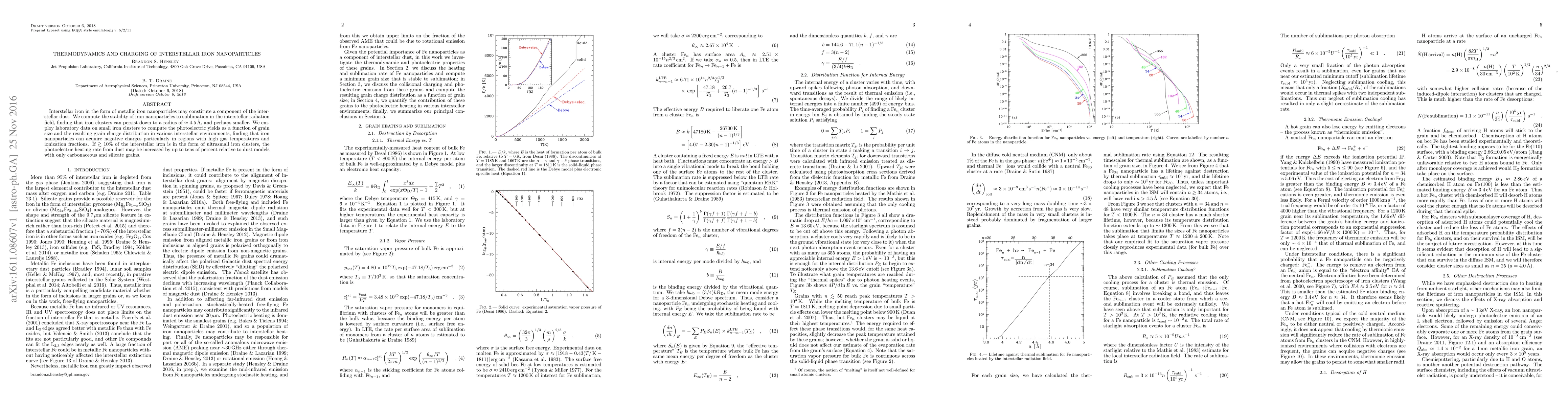 Interstellar iron in the form of metallic iron nanoparticles may constitute a component of the interstellar dust. We compute the stability of iron nanoparticles to sublimation in the interstellar radiation field, finding that iron clusters can persist down to a radius of $\simeq 4.5\,$\AA, and perhaps smaller. We employ laboratory data on small iron clusters to compute the photoelectric yields as a function of grain size and the resulting grain charge distribution in various interstellar environments, finding that iron nanoparticles can acquire negative charges particularly in regions with high gas temperatures and ionization fractions. If $\gtrsim 10\%$ of the interstellar iron is in the form of ultrasmall iron clusters, the photoelectric heating rate from dust may be increased by up to tens of percent relative to dust models with only carbonaceous and silicate grains.