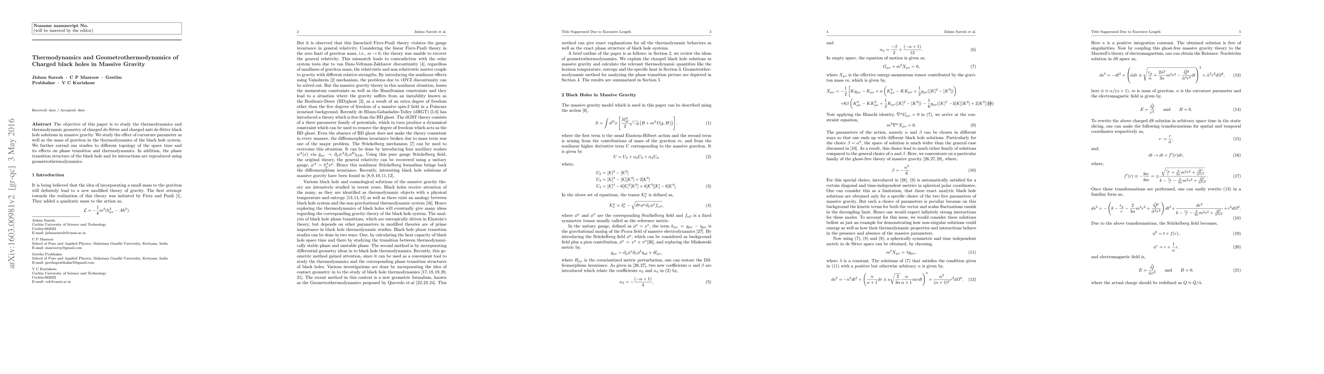 This paper examines the thermodynamics and thermodynamic geometry of charged black holes in massive gravity, considering the effects of curvature and graviton mass, and explores phase transition structures using geometrothermodynamics across various spacetime topologies.
