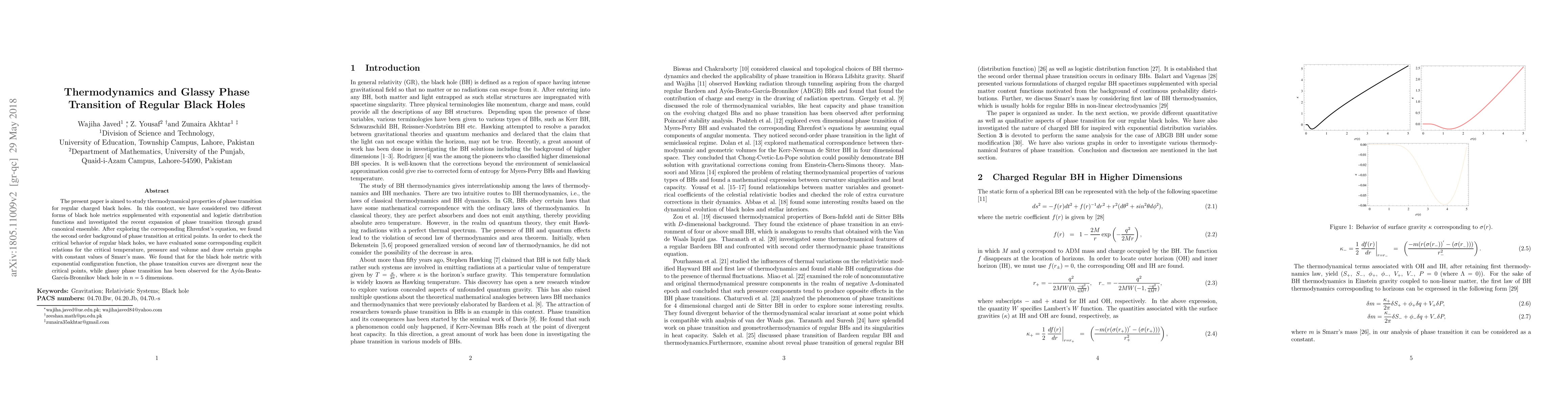 The present paper is aimed to study thermodynamical properties of phase transition for regular charged black holes. In this context, we have considered two different forms of black hole metrics supplemented with exponential and logistic distribution functions and investigated the recent expansion of phase transition through grand canonical ensemble. After exploring the corresponding Ehrenfest's equation, we found the second order background of phase transition at critical points. In order to check the critical behavior of regular black holes, we have evaluated some corresponding explicit relations for the critical temperature, pressure and volume and draw certain graphs with constant values of Smarr's mass. We found that for the BH metric with exponential configuration function, the phase transition curves are divergent near the critical points, while glassy phase transition has been observed for the Ay\'{o}n-Beato-Garc\'{i}a-Bronnikov BH in $n=5$ dimensions.