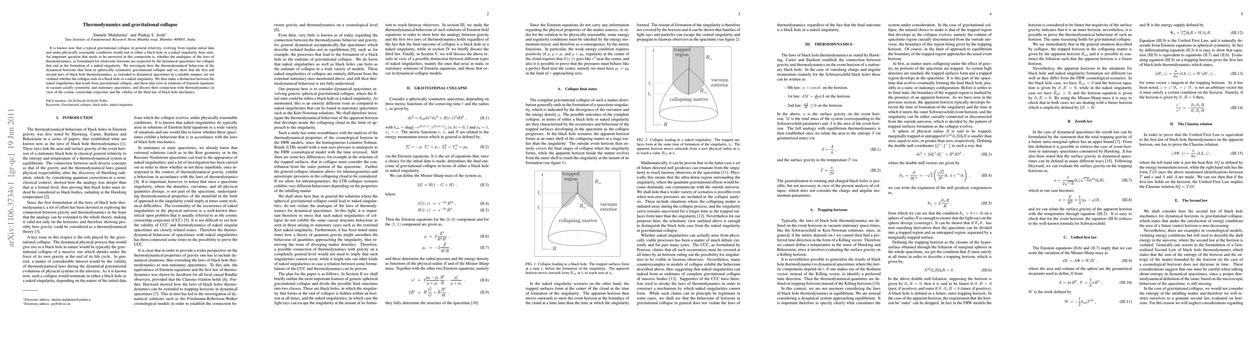 This paper explores whether the laws of thermodynamics apply to gravitational collapse in general relativity, showing that the first and second laws of black hole thermodynamics hold true in both black hole and naked singularity scenarios. It distinguishes between different types of naked singularities and discusses their thermodynamic implications in relation to the cosmic censorship conjecture and the third law of black hole mechanics.