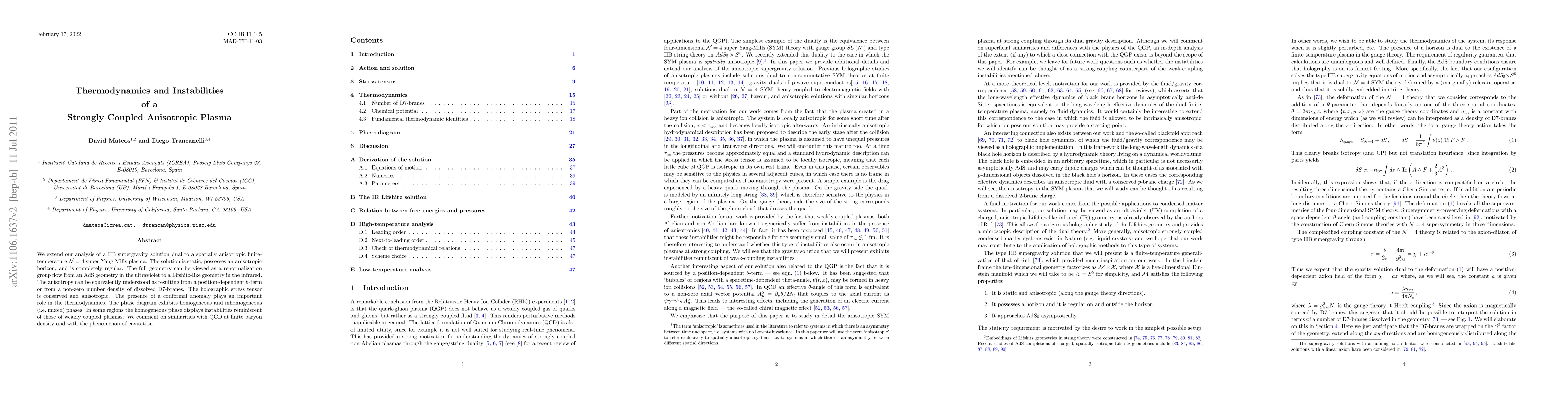 This paper investigates the thermodynamics and instabilities of a strongly coupled anisotropic plasma using a dual IIB supergravity solution. It finds anisotropic phases and instabilities similar to weakly coupled plasmas, drawing parallels to QCD and cavitation.
