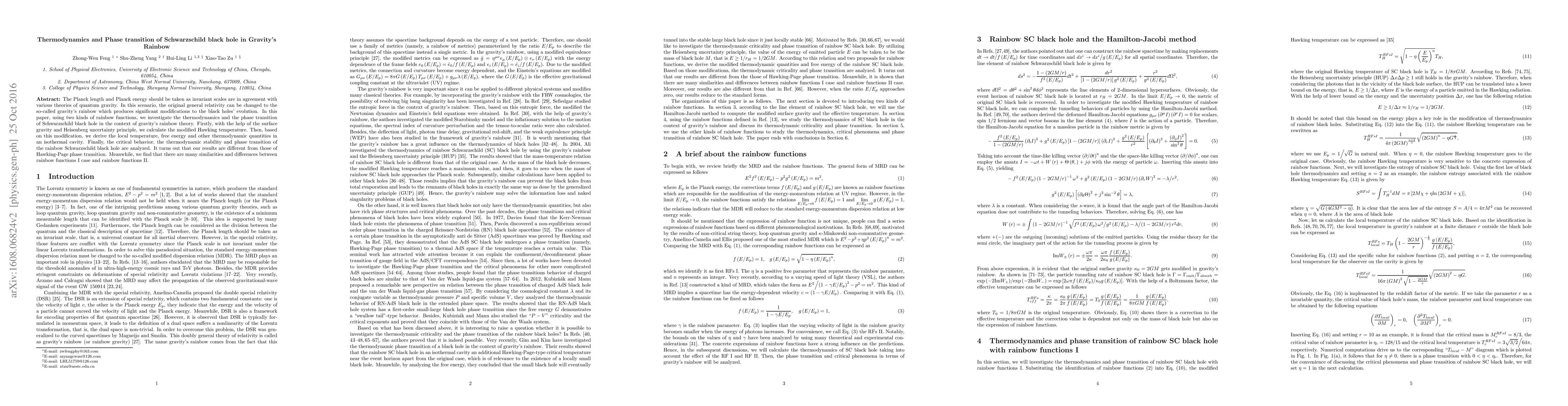 This research explores the thermodynamics and phase transition of Schwarzschild black holes within the framework of gravity's rainbow, a modified version of general relativity that incorporates quantum gravity effects. The study calculates the modified Hawking temperature using the Heisenberg uncertainty principle and investigates thermodynamic quantities, revealing distinct critical behavior and phase transition compared to the Hawking-Page transition, with notable differences between two types of rainbow functions.