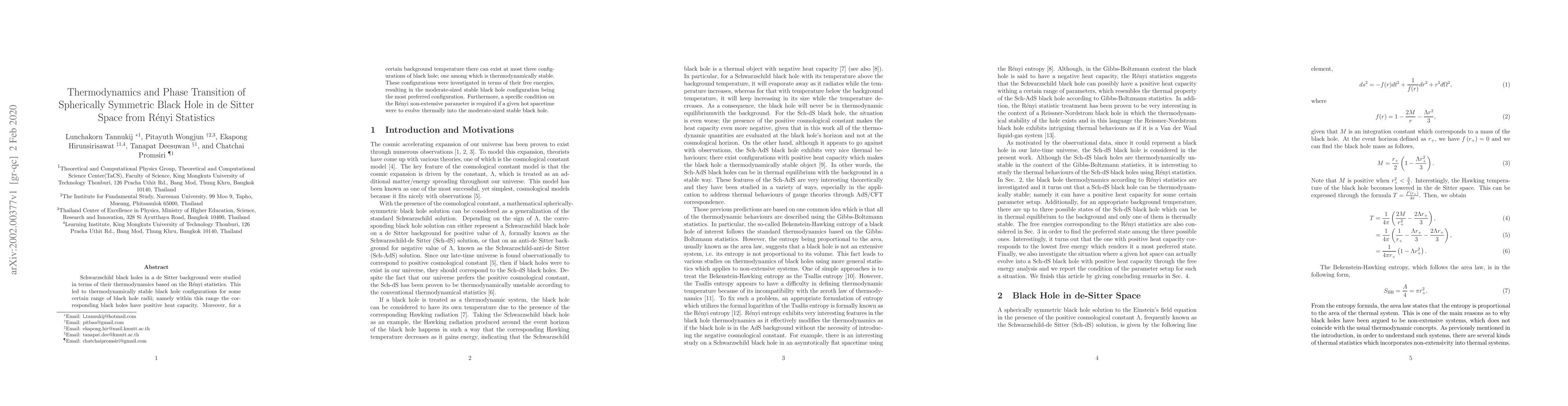 This paper explores the thermodynamics and phase transition of Schwarzschild black holes in de Sitter space using R\'enyi statistics, revealing thermodynamically stable configurations with positive heat capacity within a specific radius range. It identifies a preferred moderate-sized stable black hole configuration and outlines conditions for thermal evolution from hot spacetimes.
