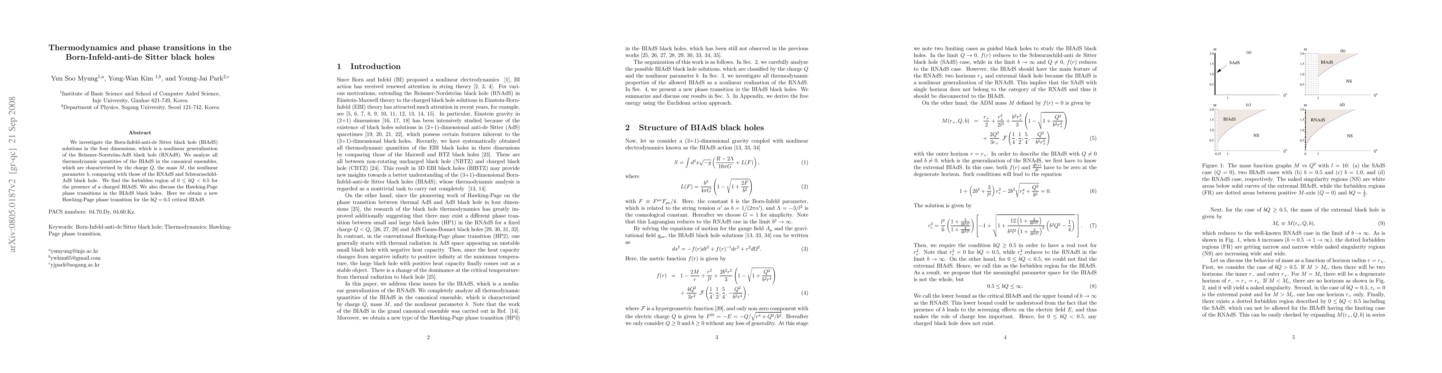 This paper examines the thermodynamics and phase transitions of four-dimensional Born-Infeld-anti-de Sitter black holes, comparing their thermodynamic properties with Reissner-Norström-AdS and Schwarzschild-AdS black holes. It identifies a forbidden region for charged BIAdS and discovers a new Hawking-Page phase transition at the critical $bQ=0.5$ value.