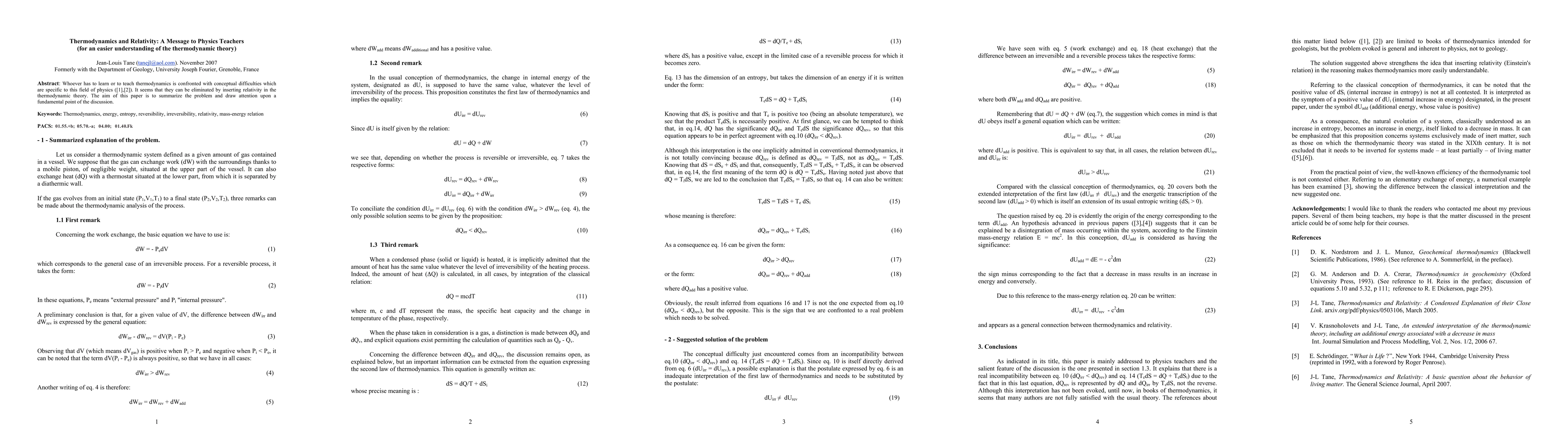The research proposes a new interpretation of thermodynamic theory, incorporating relativity and an additional energy term (dUadd) associated with a decrease in mass.