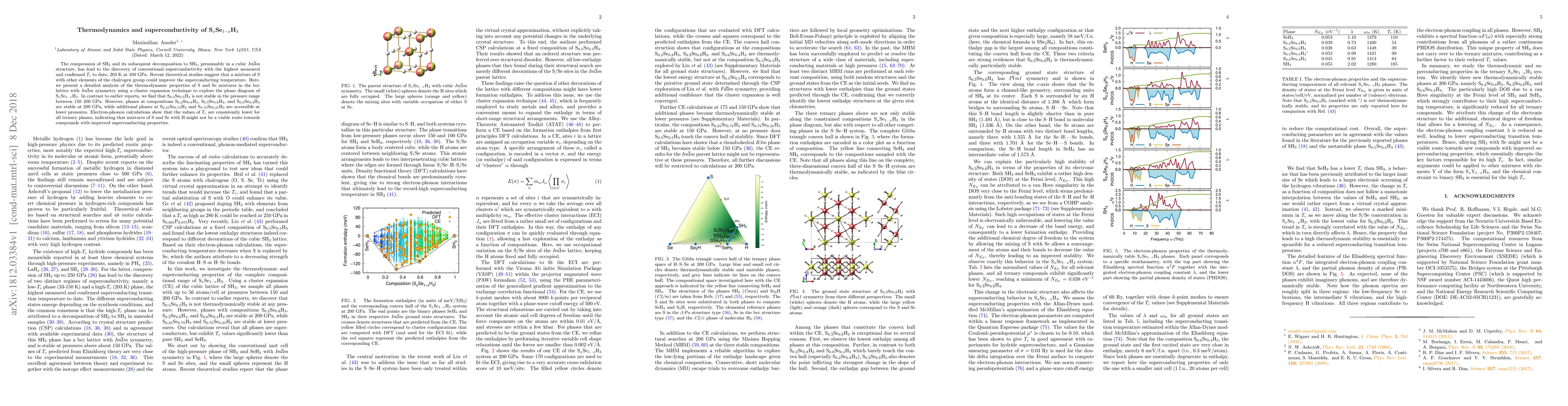 The compression of SH$_2$ and its subsequent decomposition to SH$_3$, presumably in a cubic Im$\overline{3}$m structure, has lead to the discovery of conventional superconductivity with the highest measured and confirmed $T_c$ to date, 203 K at 160 GPa. Recent theoretical studies suggest that a mixture of S with other elements of the chalcogen group could improve the superconducting temperature. Here, we present a detailed analysis of the thermodynamic properties of S and Se mixtures in the bcc lattice with Im$\overline{3}$m symmetry using a cluster expansion technique to explore the phase diagram of S$_x$Se$_{1-x}$H$_{3}$. In contrast to earlier reports, we find that S$_{0.5}$Se$_{0.5}$H$_3$ is not stable in the pressure range between 150-200 GPa. However, phases at compositions S$_{0.2}$Se$_{0.8}$H$_3$, S$_{0.\overline{3}}$Se$_{0.\overline{6}}$H$_3$, and S$_{0.6}$Se$_{0.4}$H$_3$ are stable at 200 GPa, while additional phases at S$_{0.25}$Se$_{0.75}$H$_3$ and S$_{0.75}$Se$_{0.25}$H$_3$ are accessible at lower pressures. Electron-phonon calculations show that the values of $T_c$ are consistently lower for all ternary phases, indicating that mixtures of S and Se with H might not be a viable route towards compounds with improved superconducting properties.