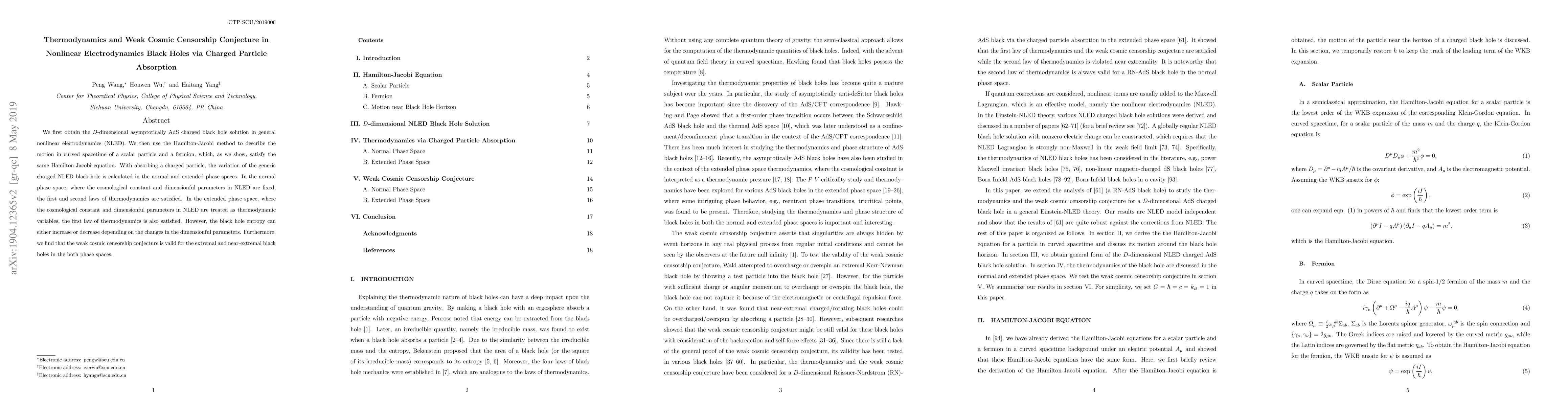 Researchers investigate nonlinear electrodynamics black holes and find that absorbing charged particles can affect thermodynamic laws, but the cosmic censorship conjecture remains valid for extremal and near-extremal black holes.