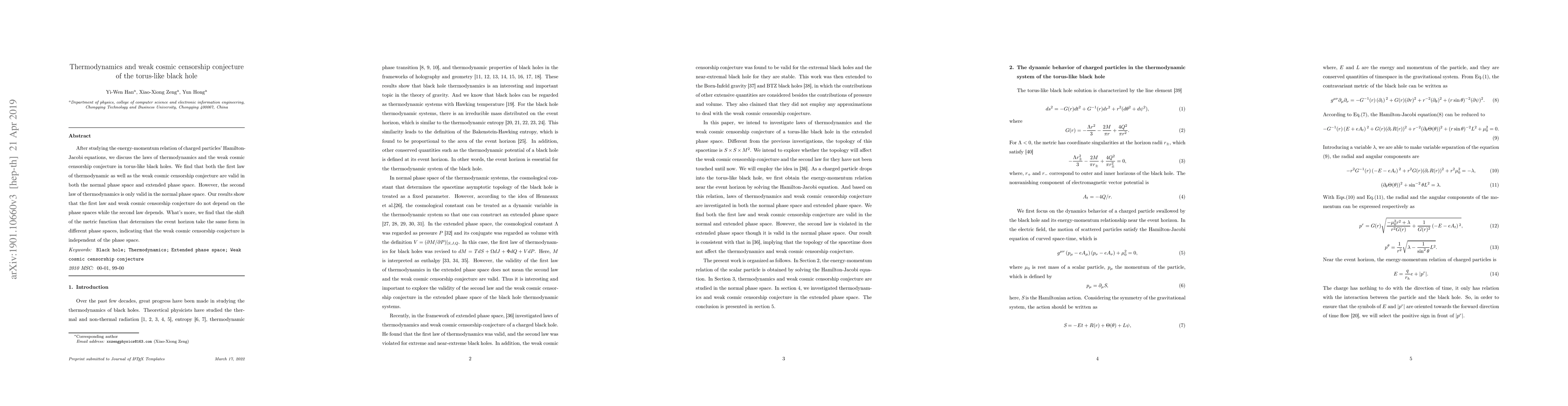 After studying the energy-momentum relation of charged particles' Hamilton-Jacobi equations, we discuss the laws of thermodynamics and the weak cosmic censorship conjecture in torus-like black holes. We find that both the first law of thermodynamic as well as the weak cosmic censorship conjecture are valid in both the normal phase space and extended phase space. However, the second law of thermodynamics is only valid in the normal phase space. Our results show that the first law and weak cosmic censorship conjecture do not depend on the phase spaces while the second law depends. What's more, we find that the shift of the metric function that determines the event horizon take the same form in different phase spaces, indicating that the weak cosmic censorship conjecture is independent of the phase space.