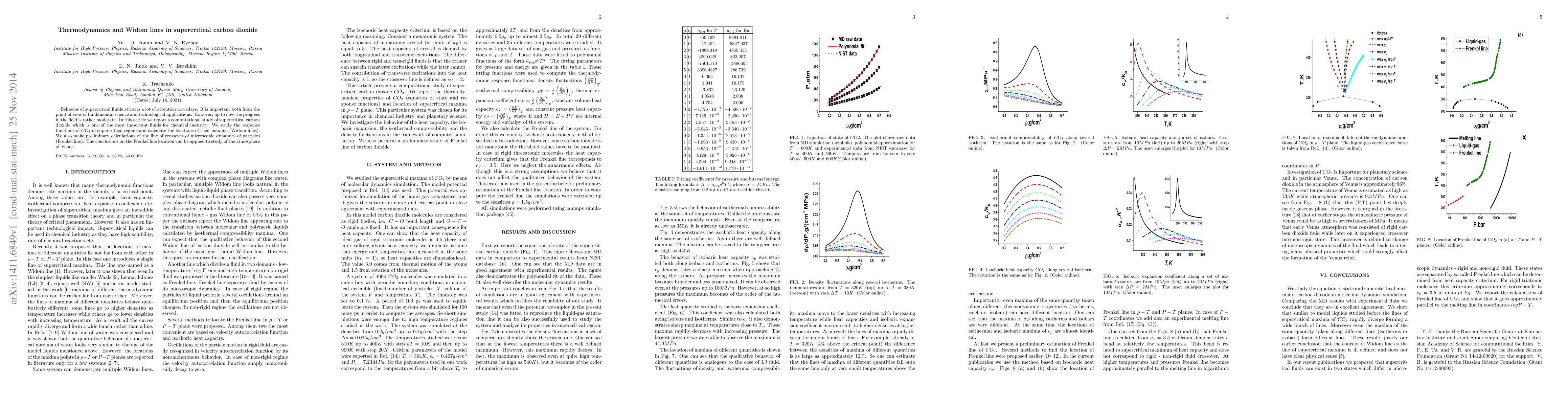This paper presents a computational study on supercritical carbon dioxide, focusing on the response functions and identifying the Widom lines, which are maxima in these functions. Preliminary calculations for the Frenkel line, related to particle dynamics crossover, are also discussed, potentially applicable to Venus' atmosphere studies.