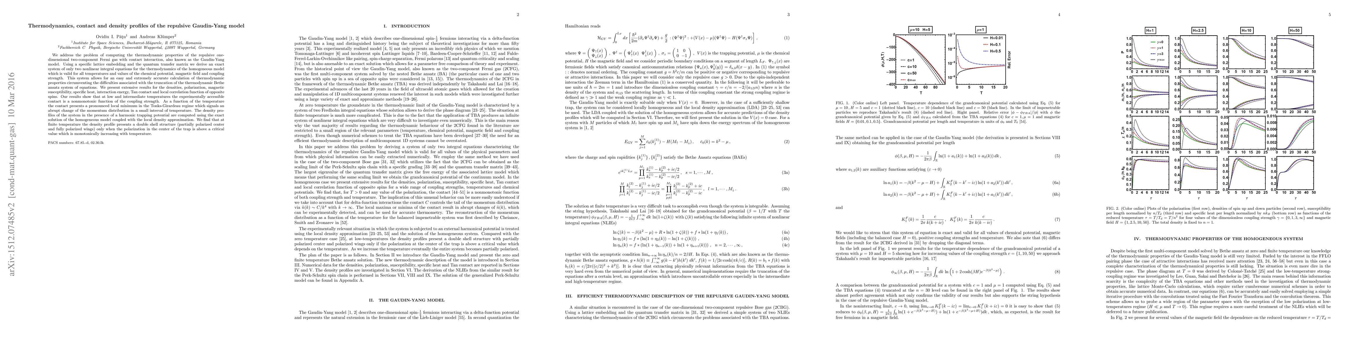 We address the problem of computing the thermodynamic properties of the repulsive one-dimensional two-component Fermi gas with contact interaction, also known as the Gaudin-Yang model. Using a specific lattice embedding and the quantum transfer matrix we derive an exact system of only two nonlinear integral equations for the thermodynamics of the homogeneous model which is valid for all temperatures and values of the chemical potential, magnetic field and coupling strength. This system allows for an easy and extremely accurate calculation of thermodynamic properties circumventing the difficulties associated with the truncation of the thermodynamic Bethe ansatz system of equations. We present extensive results for the densities, polarization, magnetic susceptibility, specific heat, interaction energy, Tan contact and local correlation function of opposite spins. Our results show that at low and intermediate temperatures the experimentally accessible contact is a non-monotonic function of the coupling strength. As a function of the temperature the contact presents a pronounced local minimum in the Tonks-Girardeau regime which signals an abrupt change of the momentum distribution in a small interval of temperature. The density profiles of the system in the presence of a harmonic trapping potential are computed using the exact solution of the homogeneous model coupled with the local density approximation. We find that at finite temperature the density profile presents a double shell structure (partially polarized center and fully polarized wings) only when the polarization in the center of the trap is above a critical value which is monotonically increasing with temperature.