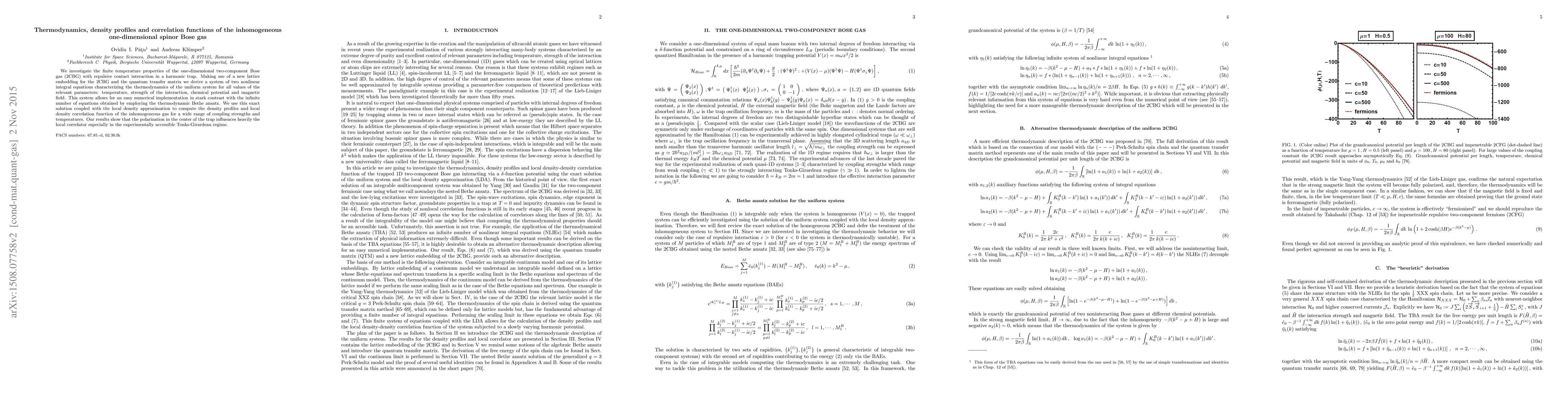 This paper explores the thermodynamic properties of a one-dimensional two-component Bose gas using a lattice embedding and quantum transfer matrix, deriving a system of nonlinear integral equations for easy numerical implementation. It also computes density profiles and correlation functions, revealing significant polarization effects in the center of the trap, especially in the Tonks-Girardeau regime.