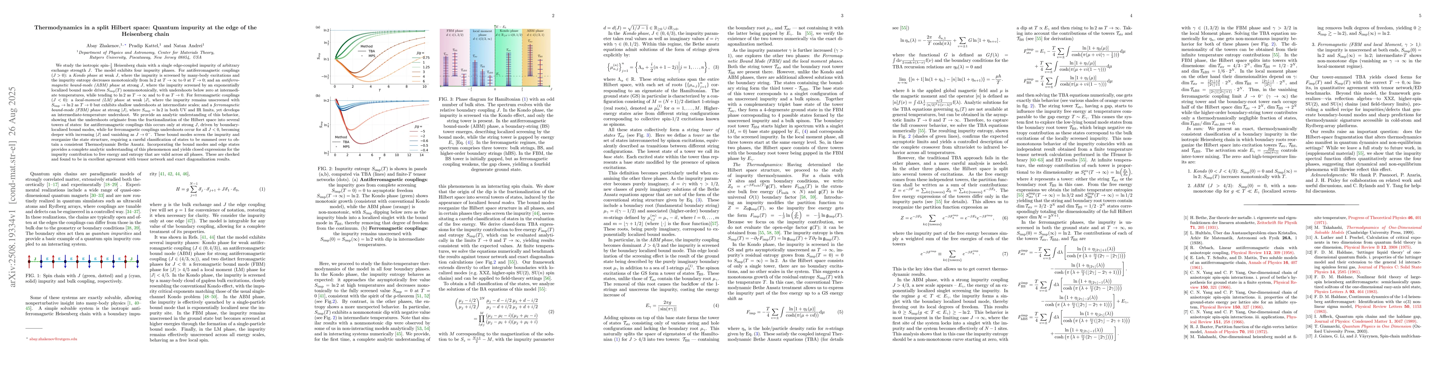 We study the isotropic spin-$\frac{1}{2}$ Heisenberg chain with a single edge-coupled impurity of arbitrary exchange strength $J$. The model exhibits four impurity phases. For antiferromagnetic couplings ($J>0$): a \textit{Kondo phase} at weak $J$, where the impurity is screened by many-body excitations and the impurity entropy decreases monotonically from $\ln 2$ at $T \to \infty$ to $0$ at $T\to 0$; and an \textit{antiferromagnetic bound-mode (ABM) phase} at strong $J$, where the impurity screened by an exponentially localized bound mode drives $S_{\mathrm{imp}}(T)$ nonmonotonically, with undershoots below zero at intermediate temperatures, while tending to $\ln 2$ as $T \to \infty$ and to $0$ as $T \to 0$. For ferromagnetic couplings ($J<0$): a local-moment (LM) phase at weak $|J|$, where the impurity remains unscreened with $S_{\mathrm{imp}}\to \ln 2$ as $T \to 0$ but exhibits shallow undershoots at intermediate scales; and a \textit{ferromagnetic bound-mode (FBM) phase} at strong $|J|$, where $S_{\mathrm{imp}}=\ln 2$ in both UV and IR limits, yet develops an intermediate-temperature undershoot. We provide an analytic understanding of this behavior, showing that the undershoots originate from the fractionalization of the Hilbert space into several towers of states: for antiferromagnetic couplings this occurs only at strong $J$, driven by boundary-localized bound modes, while for ferromagnetic couplings undershoots occur for all $J<0$, becoming deeper with increasing $|J|$ and vanishing as $J\to 0^{-}$. These bound modes screen the impurity. Incorporating the bound modes and edge states provides a complete analytic understanding of this phenomenon and yields closed expressions for the impurity contribution to free energy and entropy that are valid across all phases. These are checked and found to be in excellent agreement with tensor network and exact diagonalization results.