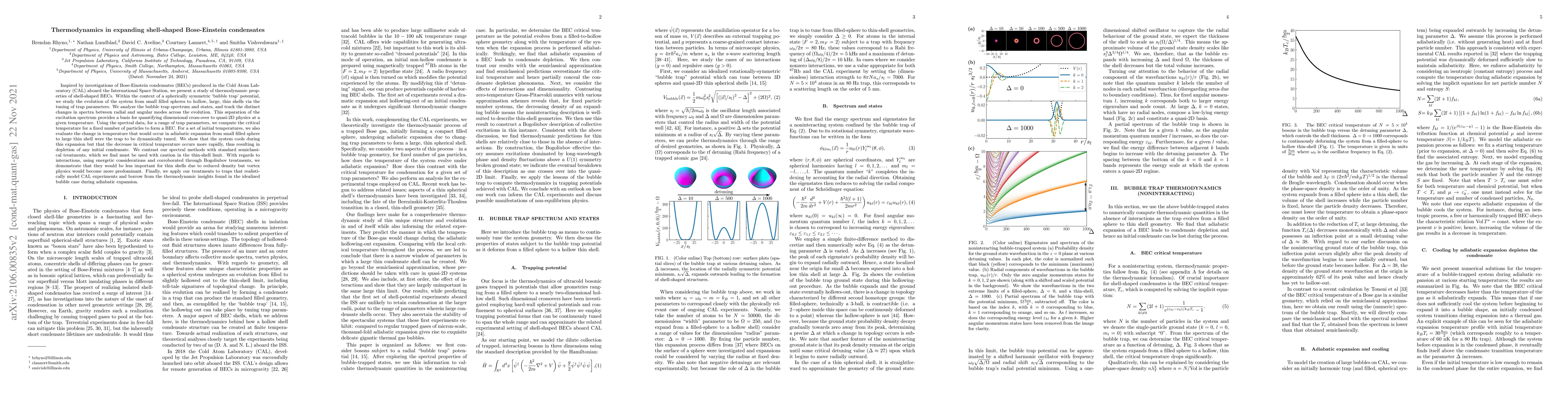 Researchers studied shell-shaped Bose-Einstein condensates in a 'bubble trap' potential, finding they cool during adiabatic expansion but lose initial condense due to rapid temperature decrease.