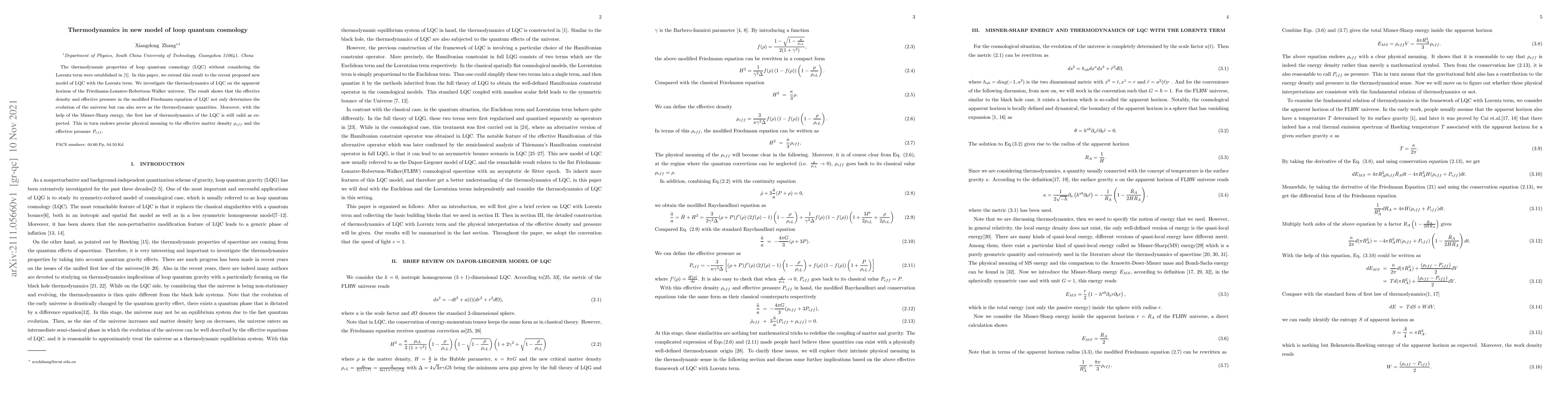 This paper extends thermodynamic properties to a new model of loop quantum cosmology (LQC) incorporating the Lorentz term, showing that effective density and pressure in the modified Friedmann equation serve as thermodynamic quantities. The first law of thermodynamics remains valid, providing physical meaning to effective matter density and pressure.