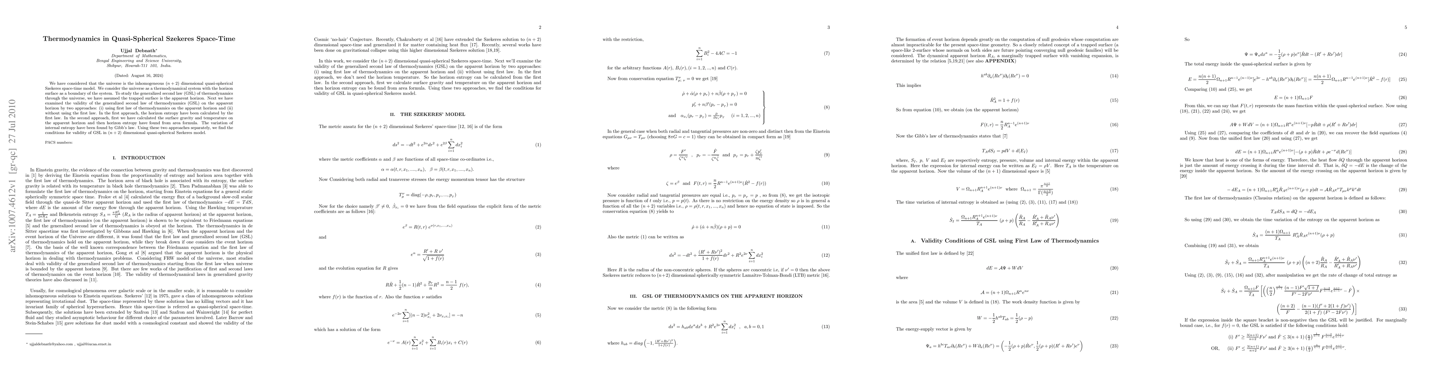 This paper explores the thermodynamics of the inhomogeneous quasi-spherical Szekeres space-time model, treating the universe as a thermodynamic system with the apparent horizon as its boundary. It investigates the generalized second law of thermodynamics using two methods: one involving the first law of thermodynamics and another based on surface gravity, temperature, and area formula.