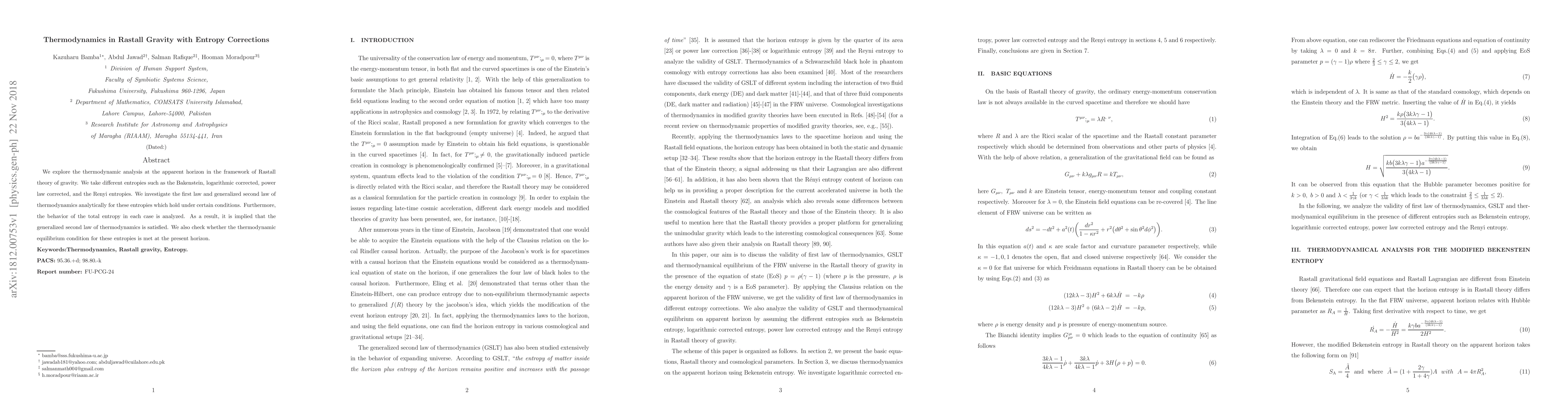 The paper derives expressions for the first and generalized second laws of thermodynamics in Rastall gravity with various entropy corrections, providing an analytical framework for such analyses.