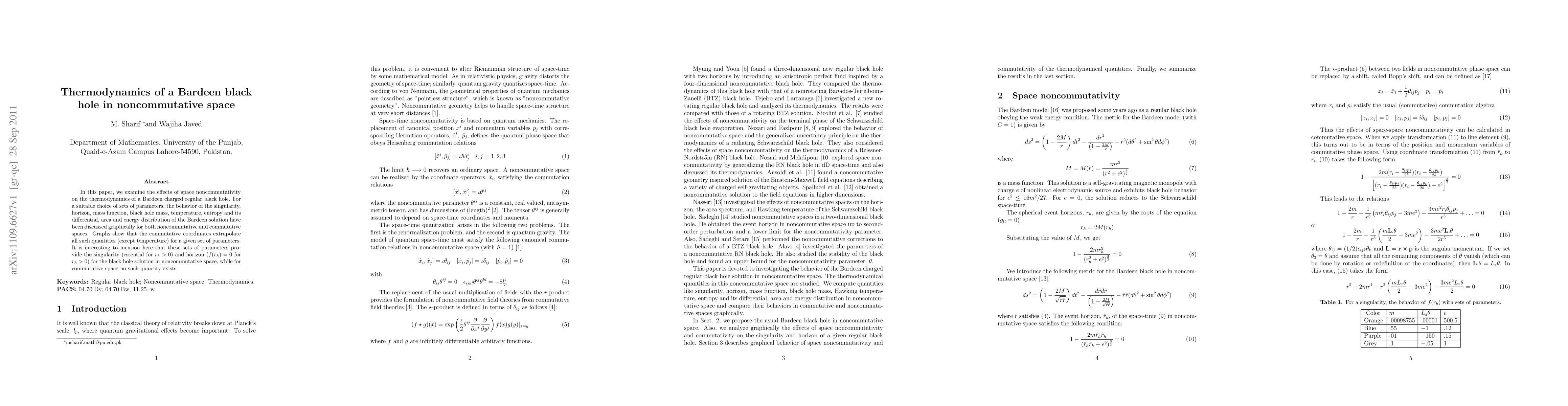 This paper investigates the thermodynamic properties of a Bardeen black hole under the influence of space noncommutativity, revealing distinct behaviors in singularity, horizon, mass, temperature, and entropy compared to commutative space, with specific parameters enabling these effects. The study highlights unique features in noncommutative space that do not exist in commutative space.