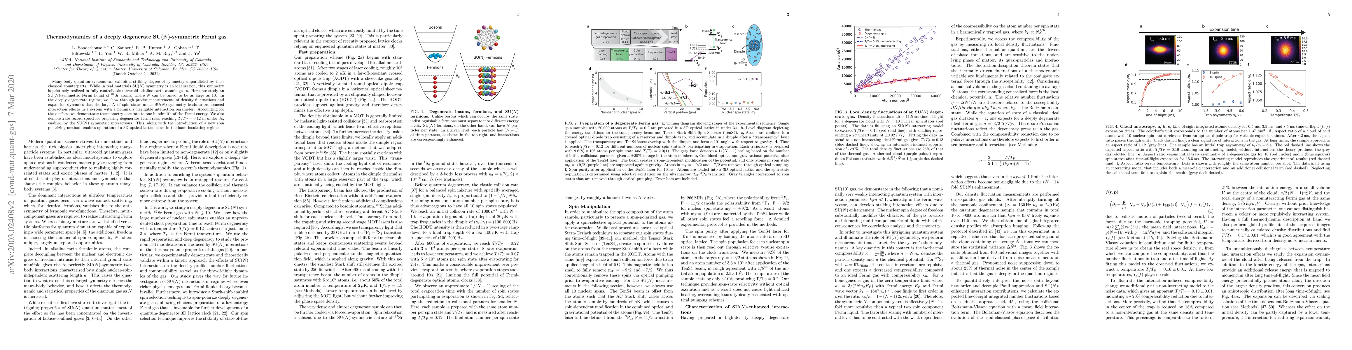 Many-body quantum systems can exhibit a striking degree of symmetry unparalleled by their classical counterparts. While in real materials SU($N$) symmetry is an idealization, this symmetry is pristinely realized in fully controllable ultracold alkaline-earth atomic gases. Here, we study an SU($N$)-symmetric Fermi liquid of $^{87}$Sr atoms, where $N$ can be tuned to be as large as 10. In the deeply degenerate regime, we show through precise measurements of density fluctuations and expansion dynamics that the large $N$ of spin states under SU($N$) symmetry leads to pronounced interaction effects in a system with a nominally negligible interaction parameter. Accounting for these effects we demonstrate thermometry accurate to one-hundredth of the Fermi energy. We also demonstrate record speed for preparing degenerate Fermi seas, reaching $T/T_F = 0.12$ in under 3 s, enabled by the SU($N$) symmetric interactions. This, along with the introduction of a new spin polarizing method, enables operation of a 3D optical lattice clock in the band insulating-regime.