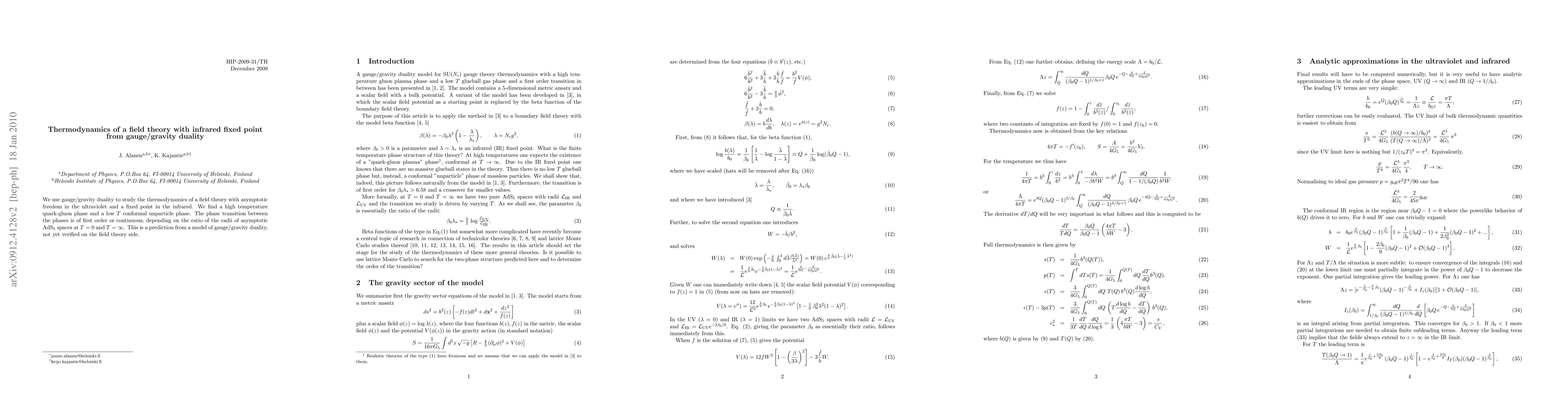 We use gauge/gravity duality to study the thermodynamics of a field theory with asymptotic freedom in the ultraviolet and a fixed point in the infrared. We find a high temperature quark-gluon phase and a low T conformal unparticle phase. The phase transition between the phases is of first order or continuous, depending on the ratio of the radii of asymptotic AdS5 spaces at T=0 and T=infinity. This is a prediction from a model of gauge/gravity duality, not yet verified on the field theory side.